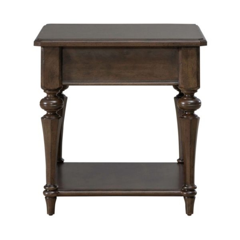 Discover the elegance of the Arden Road End Table by Liberty Furniture, a perfect blend of functionality and style for any living space. Crafted from Poplar Solids and Rustic Alder Veneers, this end table boasts a rich Satin Cherry finish that highlights the natural beauty of the wood. Its distinctive design features Ball & Vase Faceted Turned Legs for a touch of sophistication. Practicality meets elegance with its single interior storage drawer, ideal for tidying essentials, and an open bottom shelf that offers additional space for displaying decorative items or storing books. Compact yet versatile, the Arden Road End Table adds a warm, inviting touch to any room while providing essential storage and display solutions.