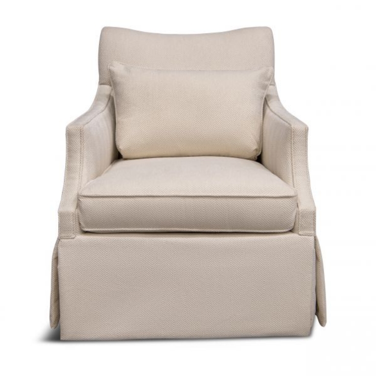 Introducing the Azriel Swivel Glider from Hooker Furniture, a stunning blend of comfort and elegance that enhances any room. Designed with a space-saving frame, this chair fits perfectly in cozy corners and larger living spaces, making it a versatile addition to your home. The standard welt trim adds a refined touch, while the skirted base lends a classic charm that complements traditional styling. With its smooth gliding and swiveling motion, the Azriel chair ensures you can effortlessly turn and interact with your surroundings, whether watching a movie or chatting with friends. Crafted for lasting enjoyment, this glider offers a cozy retreat that invites you to relax in style. Transform your space with the timeless allure of the Azriel Swivel Glider—a perfect fusion of function and fashion.