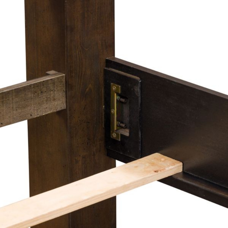 Live life beautifully with the Big Valley queen panel bed. Crafted of rubberwood solids with birch veneers, this kit features a brownstone finish with heavy distressing, bolt-on rails, and a center support slat system. The panel bed, appropriately named the mansion bed, features heavy crown molding and square post pilasters. It has warm and intricate details that replicate a salvaged antique door. Warm antique finishes, artistic distressing, and grand scale make the Big Valley a group to be passed on to generations.