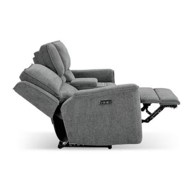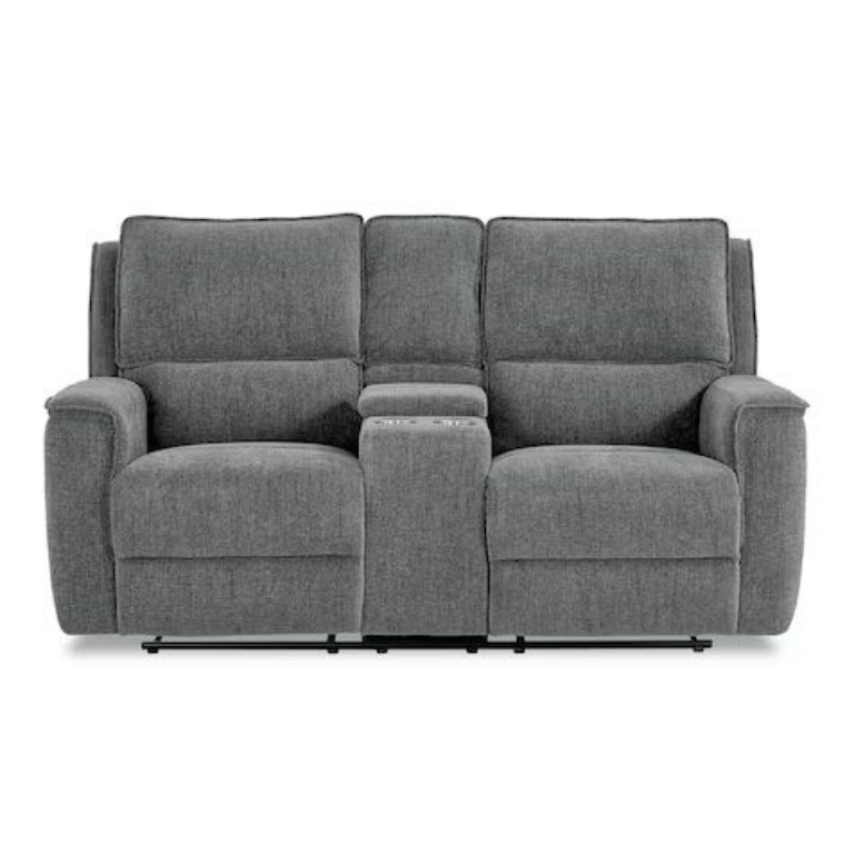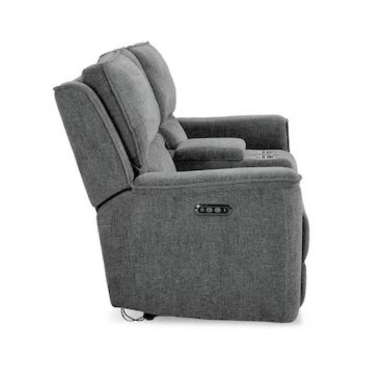 Kick back, take in a movie, and enjoy a drink (and the company)—the Calvin Power Reclining Loveseat with Console boasts extra conveniences and comfort that makes the difference. The built-in center space provides two cup holders and added arm support, making it a wise choice for home theatres, lounges, and living rooms. The wall-hugger recliner mechanism and power-adjustable headrest provide personalized comfort for two people without taking additional space, while built-in USB ports charge your devices while you relax. Hand-tailored with soft padded arms and two durable plush chenille options, the Calvin Collection delivers luxurious comfort with modern, easy-going style you’ll love.
