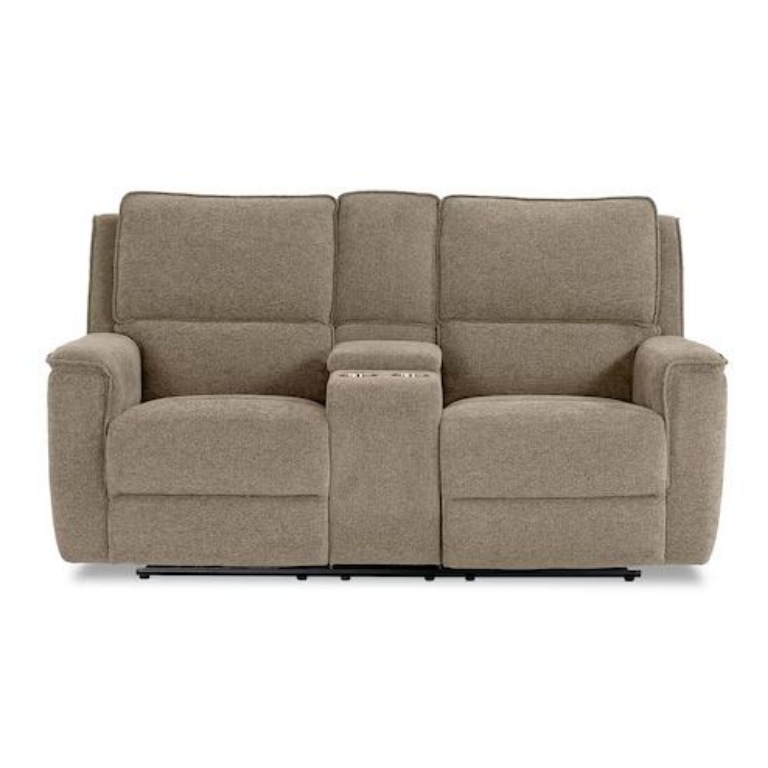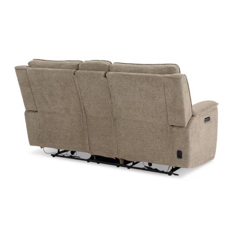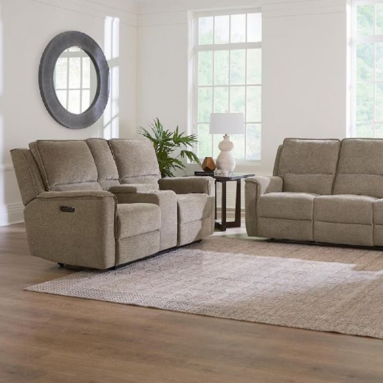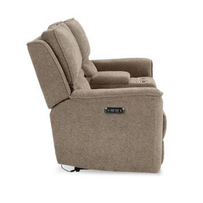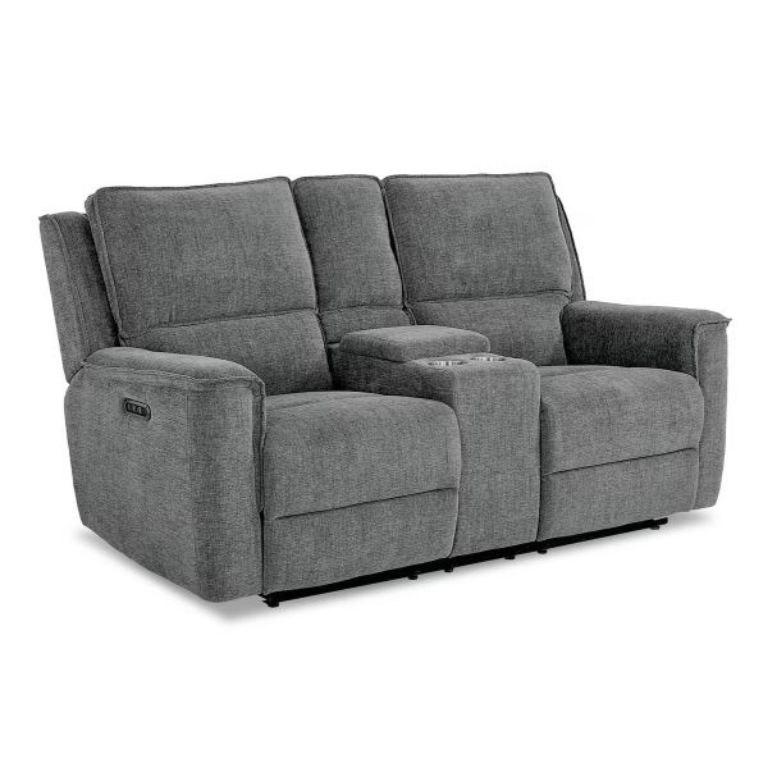 Kick back, take in a movie, and enjoy a drink (and the company)—the Calvin Power Reclining Loveseat with Console boasts extra conveniences and comfort that makes the difference. The built-in center space provides two cup holders and added arm support, making it a wise choice for home theatres, lounges, and living rooms. The wall-hugger recliner mechanism and power-adjustable headrest provide personalized comfort for two people without taking additional space, while built-in USB ports charge your devices while you relax. Hand-tailored with soft padded arms and two durable plush chenille options, the Calvin Collection delivers luxurious comfort with modern, easy-going style you’ll love.
