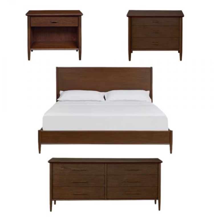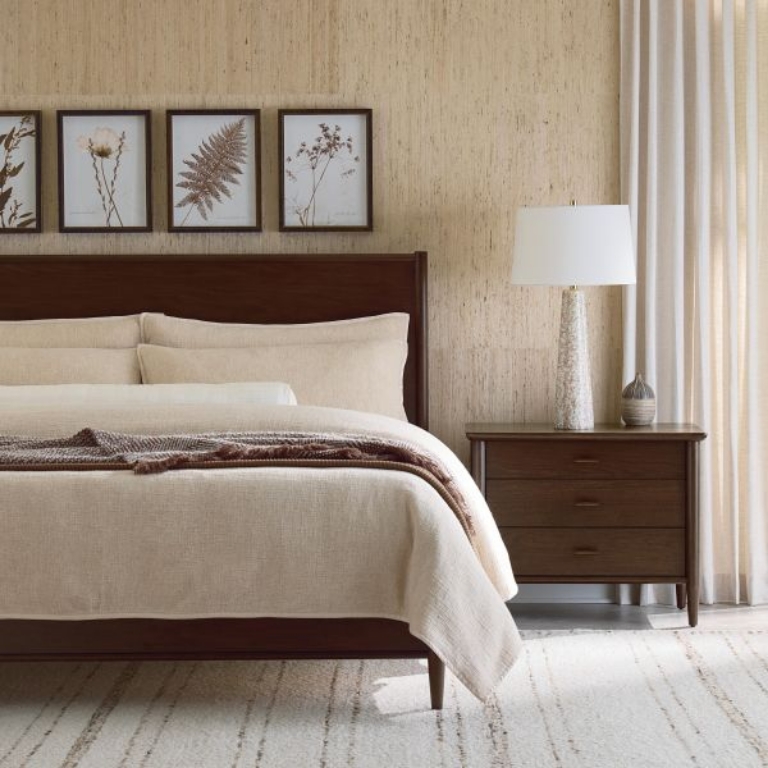 Transform your bedroom into a serene retreat with the Copenhagen King Bedroom Group from Bassett Furniture. This elegant ensemble features a stunning king panel bed crafted from warm American walnut veneers, showcasing the natural beauty of the wood in a rich Copenhagen Espresso finish. The design embodies sophistication with its rounded details, which soften the legs and edges, creating a beautifully cohesive look that’s both modern and timeless. Each piece is meticulously designed to enhance the aesthetic of your space and provide comfort and functionality. Indulge in the luxurious embrace of the Copenhagen collection—where style meets exceptional craftsmanship, making it the perfect centerpiece for your dream bedroom. Experience a restful night’s sleep surrounded by the warmth and elegance of this exquisite bedroom group.