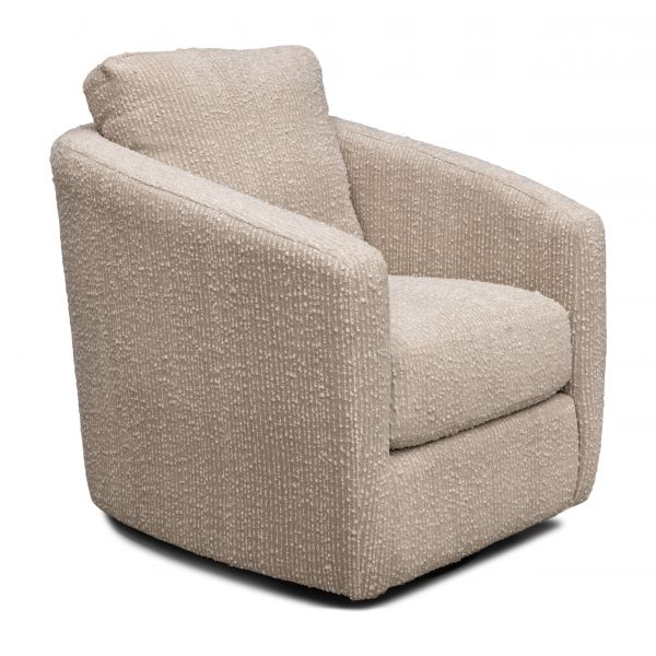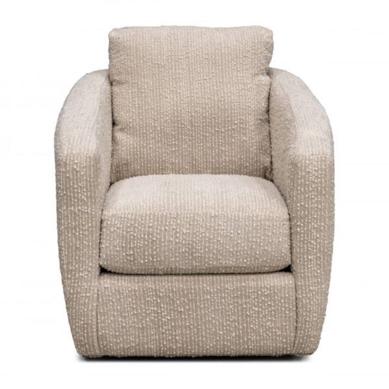 A classic barrel-shaped swivel glider chair, Daisy offers superior comfort compared to similar chairs due to its exceptional seat cushion. Made from Energex poly foam, the seat cushion is thicker than any of its competitors. Its overall size has been scaled to fit into even the tightest room setting, yet also holds its own presence in the most spacious areas, looking extremely good in pairs. Daisy is available to custom order in hundreds of fabrics and leathers. This classic frame can be styled either in a contemporary or traditional manner, depending on the fabric it is paired with.