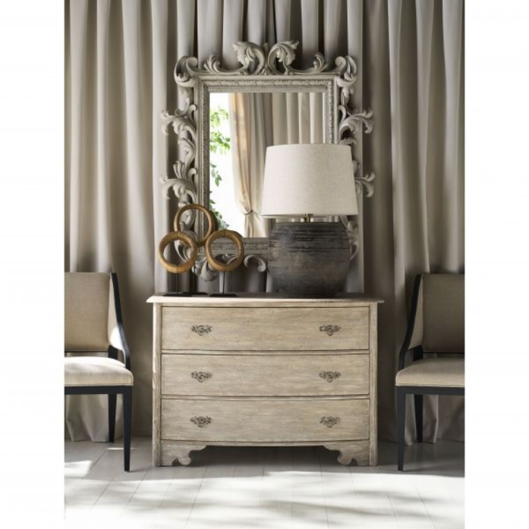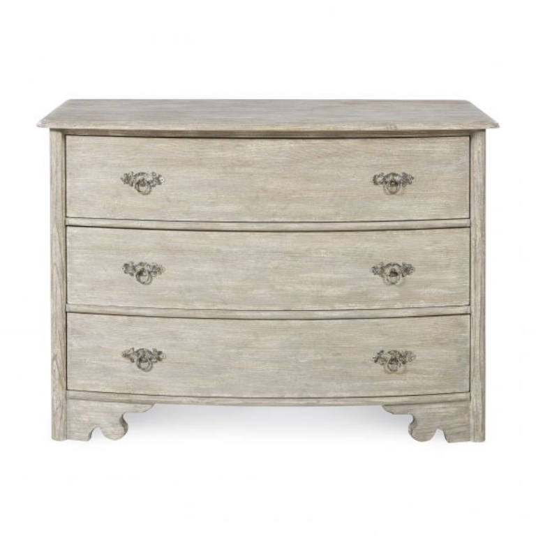 The 19th-century-inspired Swedish chest in a scraped cream finish embodies the Gustavian style, which is characterized by its restrained elegance and neoclassical influences, a reflection of King Gustav III's admiration for French aesthetics. This style often featured light, muted colors and a distressed finish, such as the scraped cream, to evoke a sense of age and timelessness, aligning with the Swedish preference for simplicity and lightness in interior decor. The chest's design and finish highlight the period's emphasis on fine craftsmanship and functional beauty, marking a significant period in Swedish furniture history that harmonized practicality with refined taste.