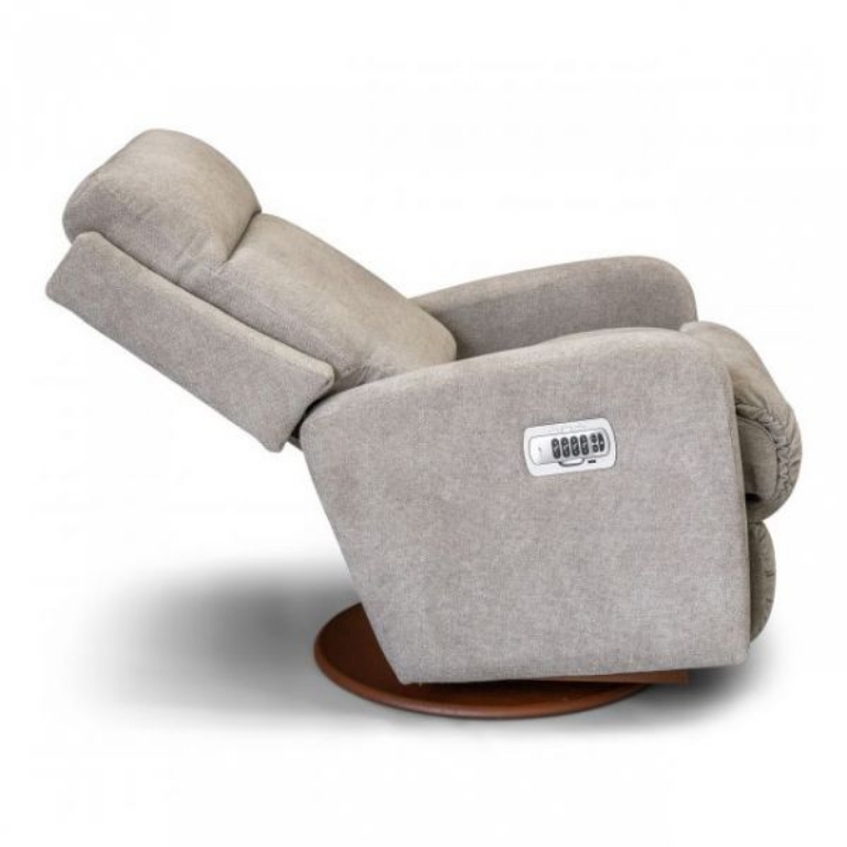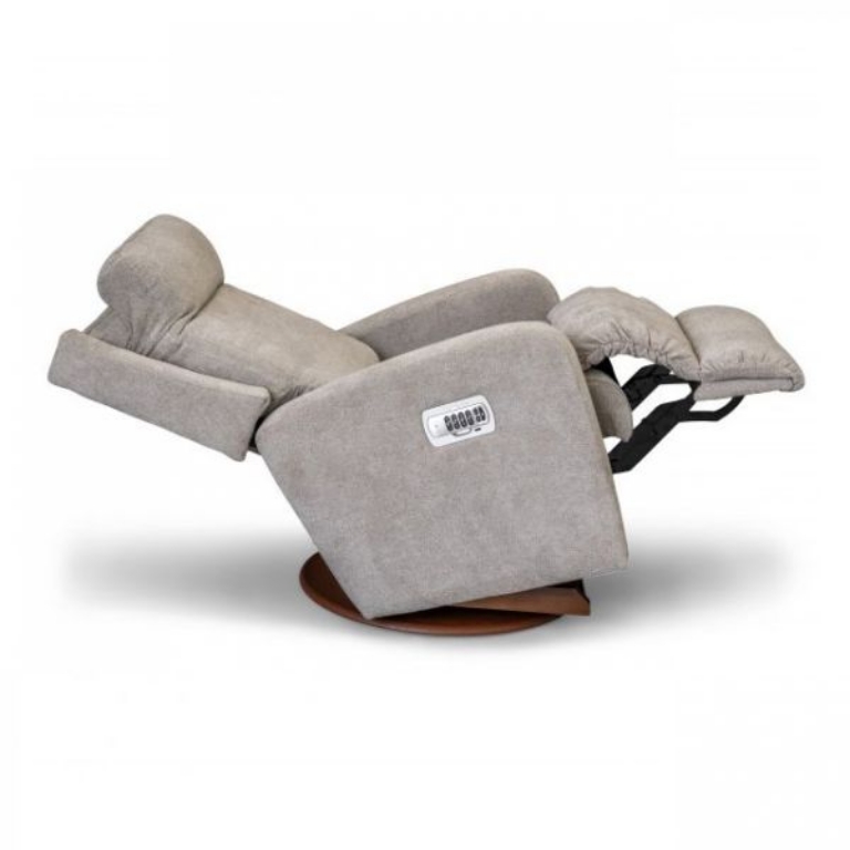 Looking for reclining comfort with a contemporary style? The Finley Power Rocking Recliner with Headrest and Lumbar fits the bill with modern lines, sleek track arms, and a tall foam back that gives it a neat and structured look. The ultra-plush chaise seat and leg rest cradle the body in a continuous comfort zone. The side-mounted control panel allows you to adjust the back, legrest, headrest, and lumbar for countless combinations of customized comfort. It has a USB charging port and two memory settings to save your favorite reclining positions. It's a relaxing rocker with a smooth, graceful motion when you're not reclining.