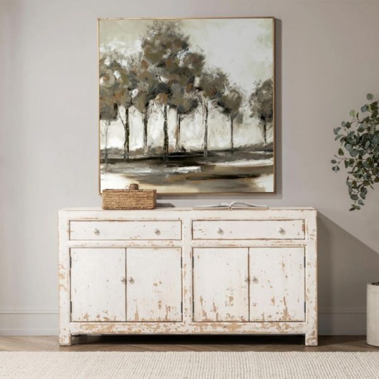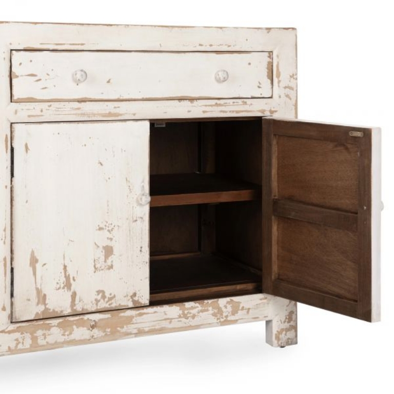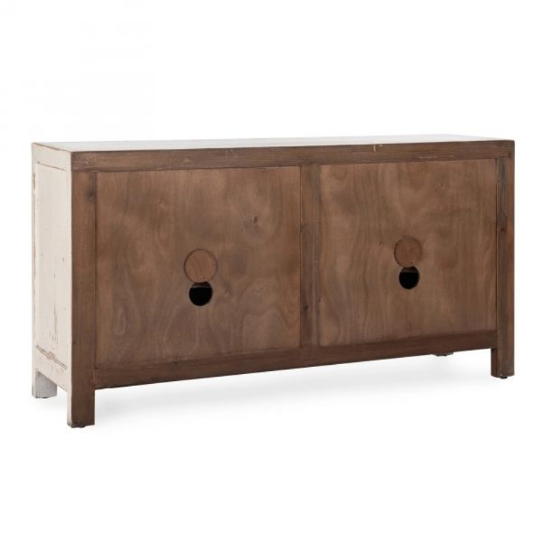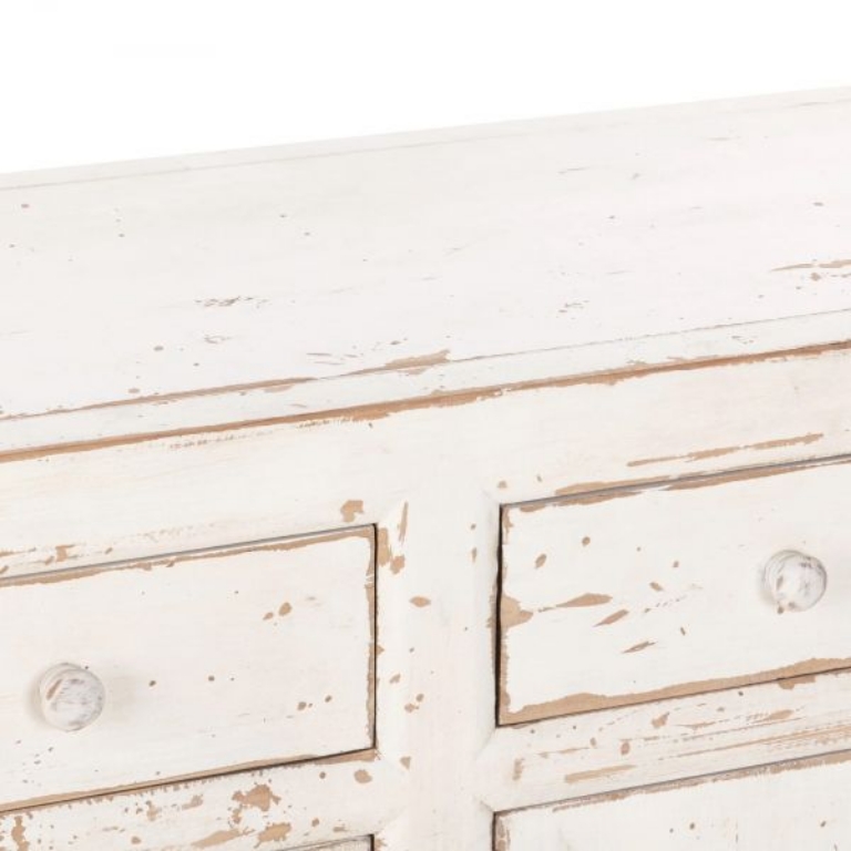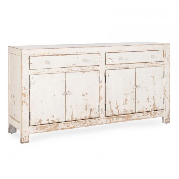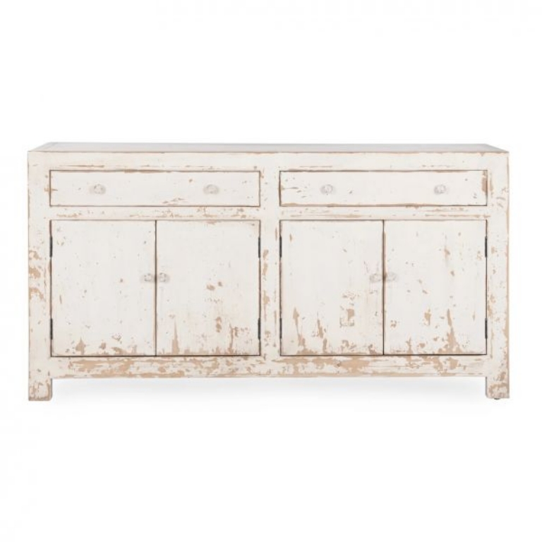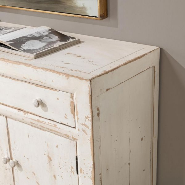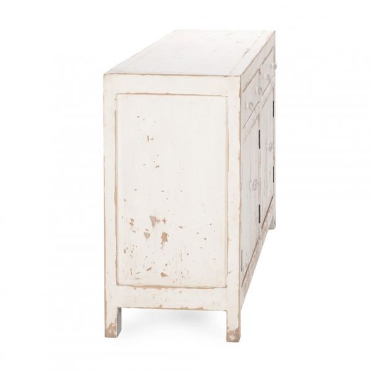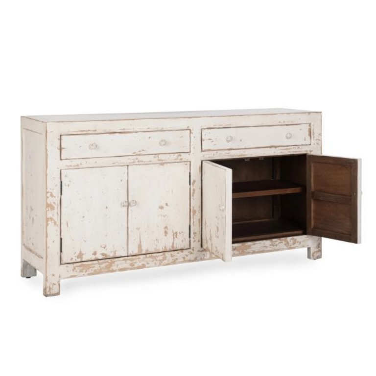 Expertly crafted of reclaimed pine, the Holden buffet beautifully reveals the grain and markings of the original lumber. The distressed finish and tonal knobs give the look of a found treasured piece.