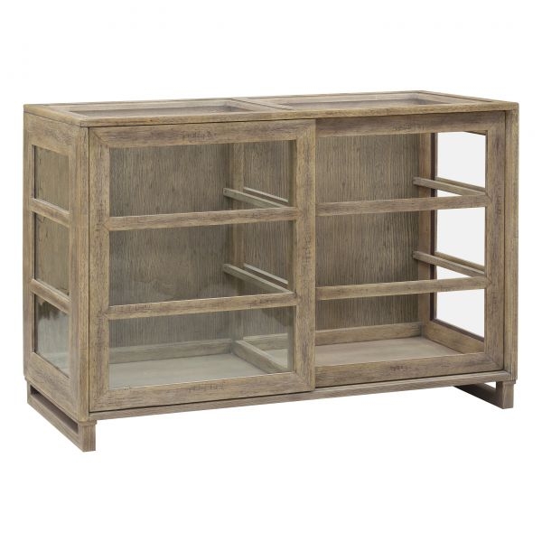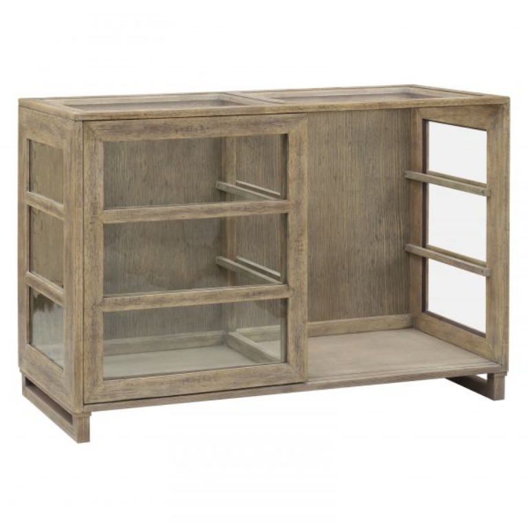 Introducing the Jade Accent Cabinet by Pulaski Furniture, a versatile addition to any living space that seamlessly blends style and functionality. This multi-use casual cabinet features two elegantly crafted sliding-seed glass doors that not only provide easy access to your belongings but also add a touch of sophistication. With glass side and top inserts, the cabinet allows light to filter through, enhancing the natural beauty of its light wood finish. The minimalist design makes it perfect for showcasing your favorite decor, books, or personal treasures, while its spacious interior offers ample storage without compromising on style. Whether placed in a hallway, living room, or home office, the Jade Accent Cabinet effortlessly complements a variety of decor styles, making it an ideal choice for those looking to elevate their space with both functionality and charm.