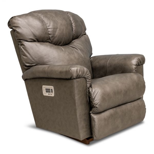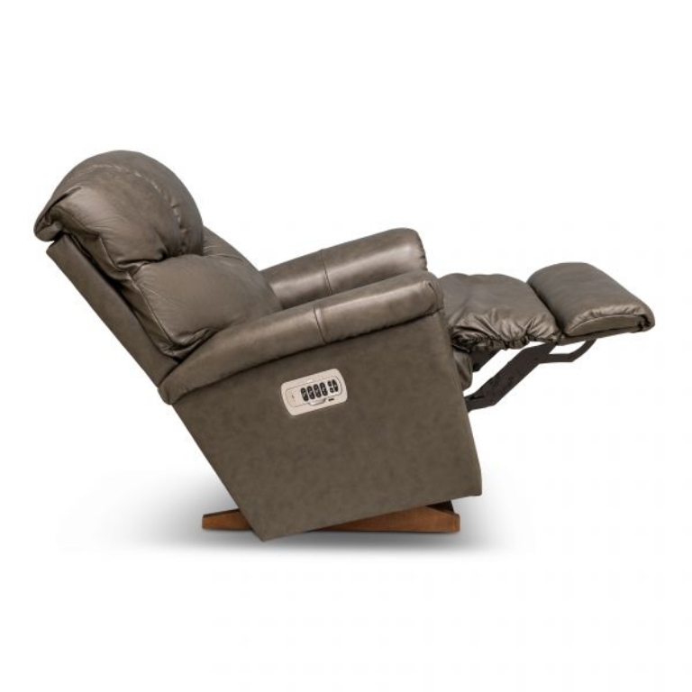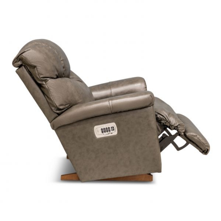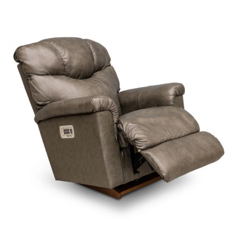 The Lancer Power Rocking Recliner with Headrest and Lumbar has all the hallmarks of a classic recliner: richly padded arms, a tall, cushy back, and a cozy chaise seat and legrest to sink into. Adjust it head to toe, with added lumbar comfort, too!