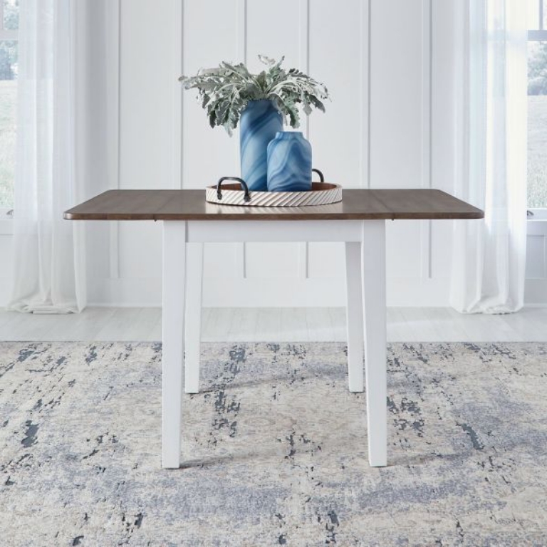 Introducing the Landale Drop Leaf Table, the perfect blend of style and functionality for your dining space! This charming table features two 11-inch drop-down leaves, allowing you to adjust its size to fit your needs effortlessly. Whether hosting a cozy dinner for two or accommodating guests for a larger gathering, this space-saving design is ideal for any room. Crafted with a beautiful two-tone Chestnut and White finish, the Landale Drop Leaf Table adds a touch of warmth and elegance to your decor. Its versatile color scheme seamlessly complements various interior styles, making it a perfect addition to kitchens, dining rooms, or even small apartments. With its sturdy construction and innovative design, this table maximizes your space and enhances your dining experience. Elevate your home with the Landale Drop Leaf Table, where style meets practicality!