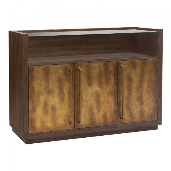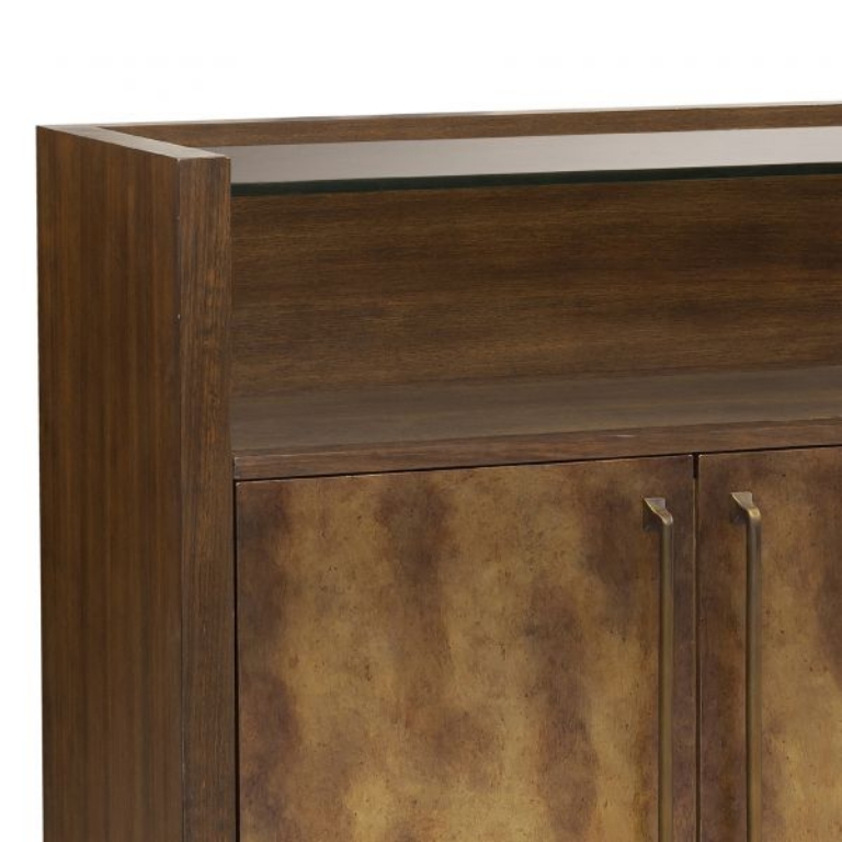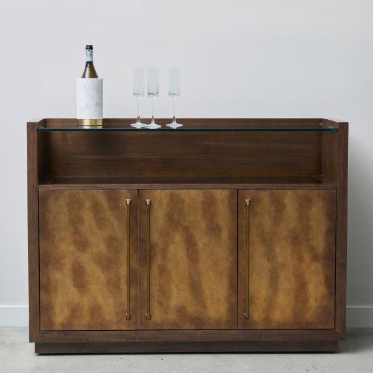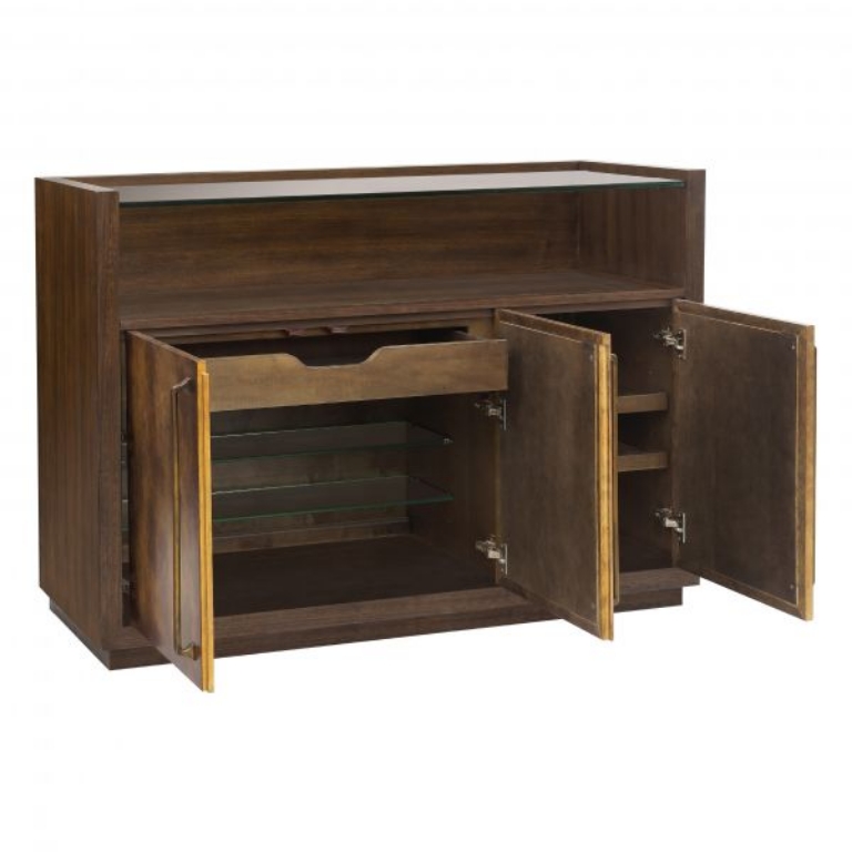 Elevate your entertaining experience with the Lia Copper Bar from Pulaski Furniture. This stylish and functional casual bar features a modern design that seamlessly blends with any decor. Crafted with quality materials, it boasts a stunning copper finish that adds a touch of elegance to your space. The bar is thoughtfully designed with three doors, providing ample storage for all your beverage essentials. On the left side, you'll find a spacious drawer and an adjustable glass shelf, perfect for showcasing your favorite drinks or glassware. The right side includes two generous shelves, ensuring plenty of room for mixers and other bar supplies. At the top, a glass shelf adds a sophisticated touch while enhancing the overall aesthetic. Whether you're hosting a casual gathering or a formal celebration, the Lia Copper Bar is the perfect centerpiece for your home, combining style, versatility, and practicality in one stunning piece.