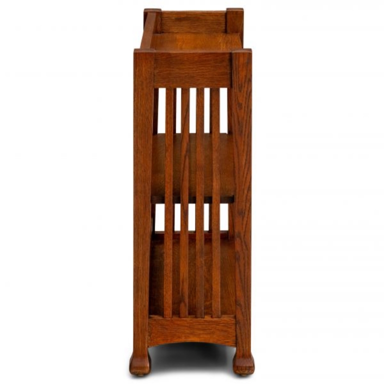 Bookended by spindles, this piece has tapered legs that end with gracefully shaped feet.