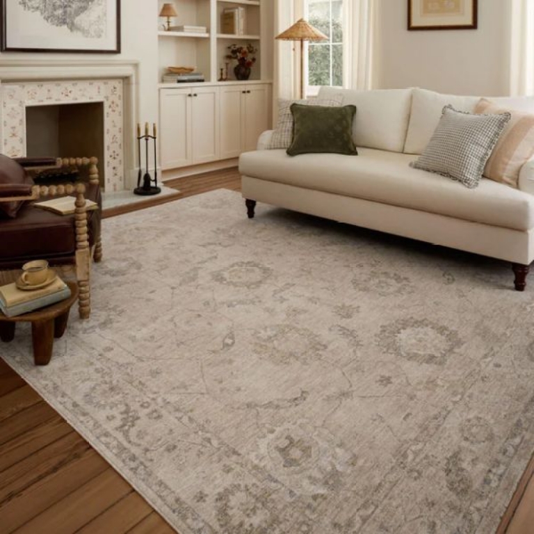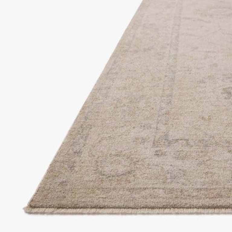 The Louisa Collection is a serene area rug based on beautiful, traditional Turkish designs updated in calm colorways by Chris Loves Julia in collaboration with Loloi. Pale blues, creams, and browns create a sense of softness, but so does the rug pile, which is made of easy-to-clean, velvety polyester. This collection is power-loomed of 100% polyester in Turkey, a durable design for busy family rooms, bedrooms, home offices, and more. Louisa is OEKO-TEX certified, ensuring its materials don't contain harmful substances. It is available in various sizes.