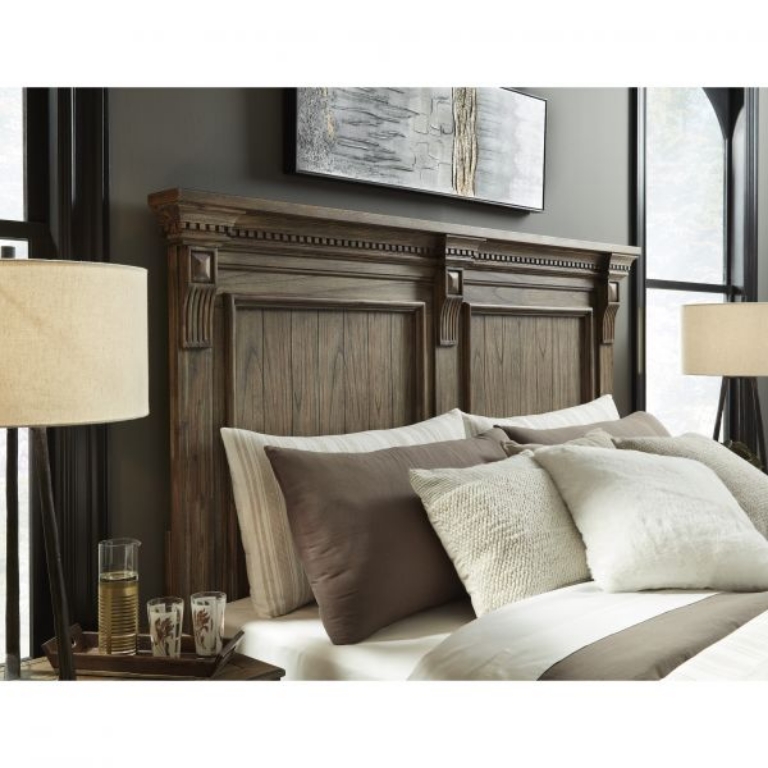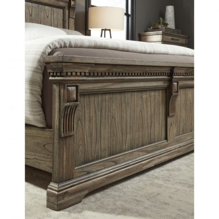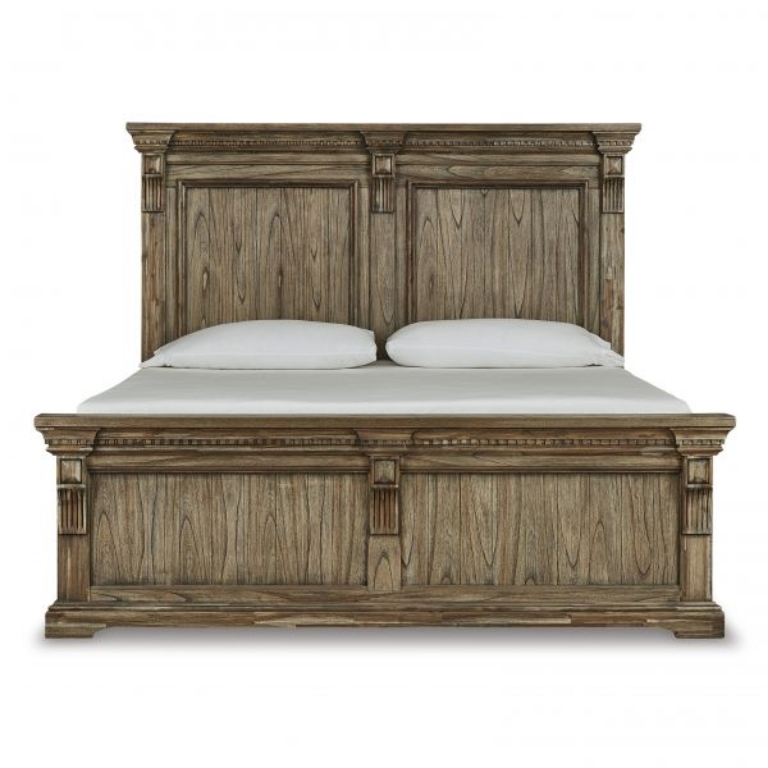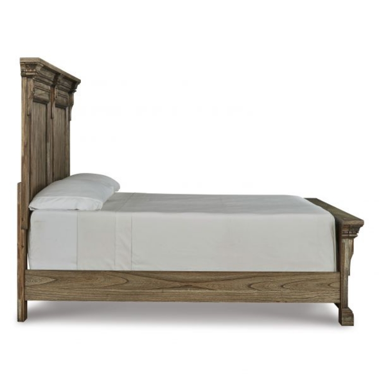 Elevate your bedroom decor with the Markenburg Queen Bed, where vintage charm meets modern elegance. This stunning panel bed showcases intricate craftsmanship with its thick crown molding and fluted pilasters, creating a stately presence that will impress. The inset dentil trim adds a touch of sophistication, while the stylized corbels and subtle detailing provide picturesque finishing touches to this timeless piece. Crafted for both style and comfort, the Markenburg Queen Bed is designed to be the centerpiece of your bedroom, offering a restful retreat that echoes classic design elements. Experience the perfect blend of nostalgic beauty and contemporary comfort with this exquisite bed that invites you to unwind in style. Transform your sleeping space with the Markenburg Queen Bed and embrace the elegance of vintage-inspired furniture.
