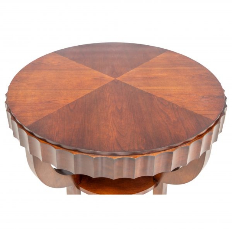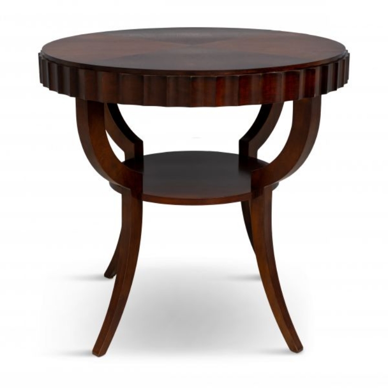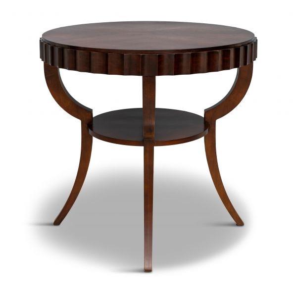 Introducing the Masquerade Lamp Table by Sherrill Furniture – a stunning addition to any modern living space. This round lamp table features gracefully shaped tapered legs that lend an air of sophistication and elegance. The thoughtfully designed mid-shelf adds visual interest and provides practical space for storage or display. What sets the Masquerade Lamp Table apart is its contemporary twist on classic design elements, highlighted by the intricate dentil molded aprons. This striking piece effortlessly blends traditional craftsmanship with modern style, making it a versatile accent for your home. Whether used as a stylish side table next to your favorite chair or as a statement piece in your living room, the Masquerade Lamp Table will enhance your decor with its timeless charm and modern flair. Elevate your interior with this exquisite piece that embodies both form and function.