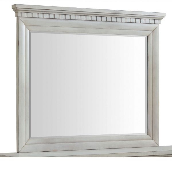 Elevate your home decor with the exquisite McCoy Mirror by Elements International. This stunning mirror is beautifully mounted in a durable wood frame, featuring elegant dentil molding across the top that adds a touch of sophistication. Finished in a charming antique white, it effortlessly complements a variety of styles, from classic to contemporary. Perfectly designed to be mounted on the matching McCoy dresser, this mirror not only serves a practical purpose but also enhances your space with its timeless elegance. Whether you're getting ready for the day or simply admiring your reflection, the McCoy Mirror is a stunning focal point for any bedroom.