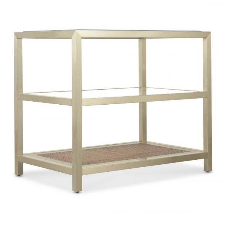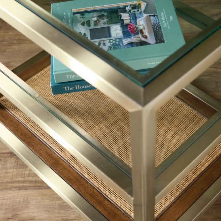 Complete your living room with the Melange Raising Cane End Table. Featuring a sleek rectangular design, this end table blends a stainless steel frame with a glass top and a wood-framed cane shelf for added storage. The glass shelf and cane insert provide an additional layer of modern functionality. With its versatile design, this table effortlessly complements both modern and transitional interiors, making it a perfect addition to your space.
