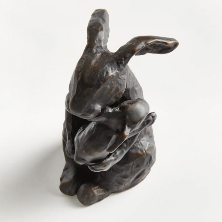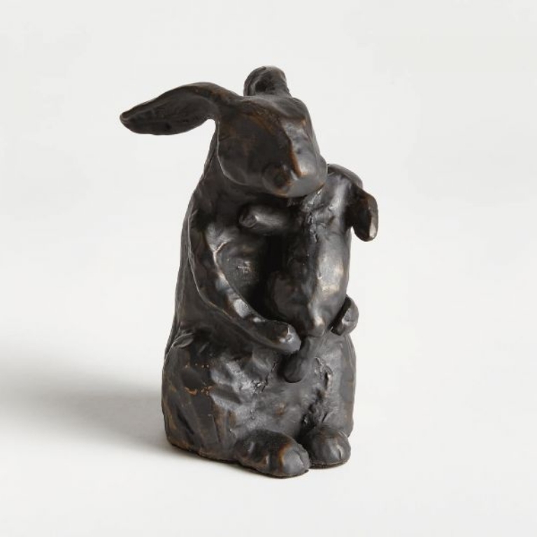 A visual metaphor of a mother's love in a dark bronze finish, this rabbit sculpture is an endearing accent for Spring or all year round. Tuck into a bookshelf or sit atop a desk or ottoman for a touch of charm.