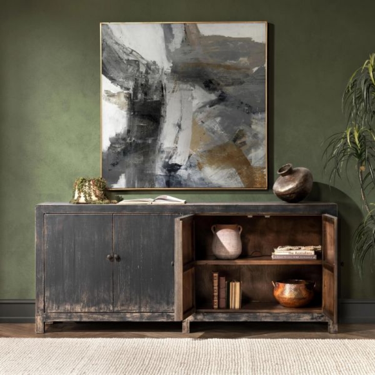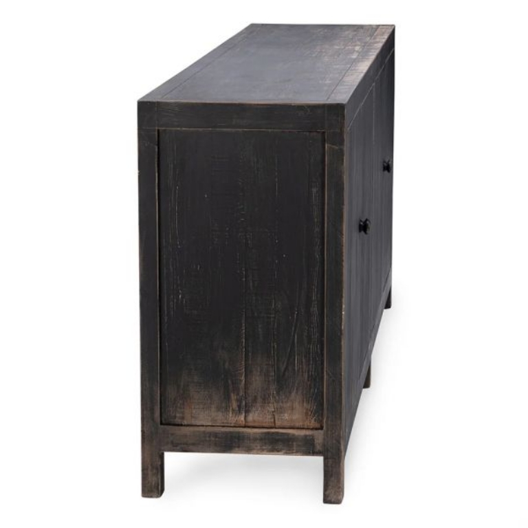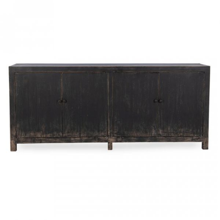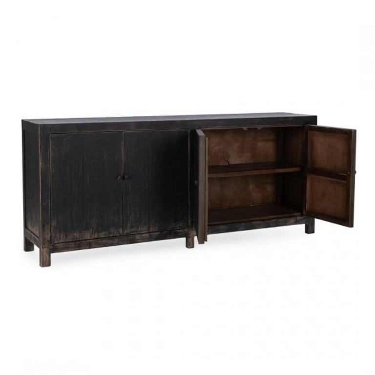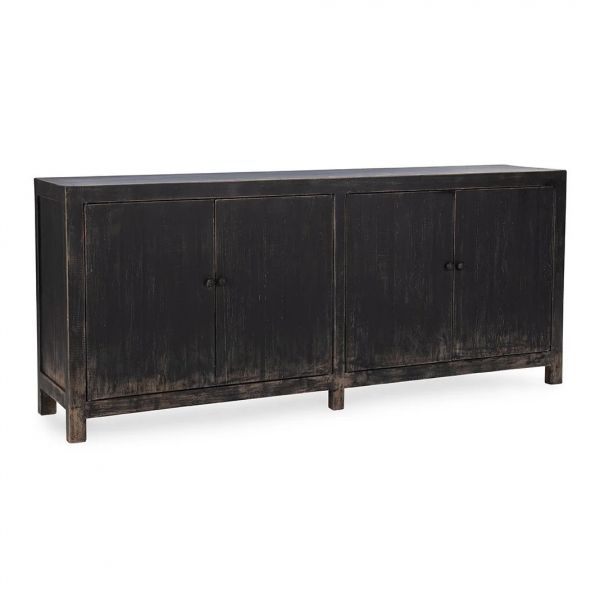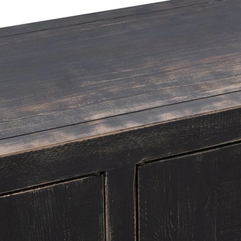 Inspired by an industrial era, The Naya Buffet brings rustic charm with its reclaimed pine construction and worn black finish. Its minimalist design exudes understated elegance, making it the perfect statement piece for classic style.