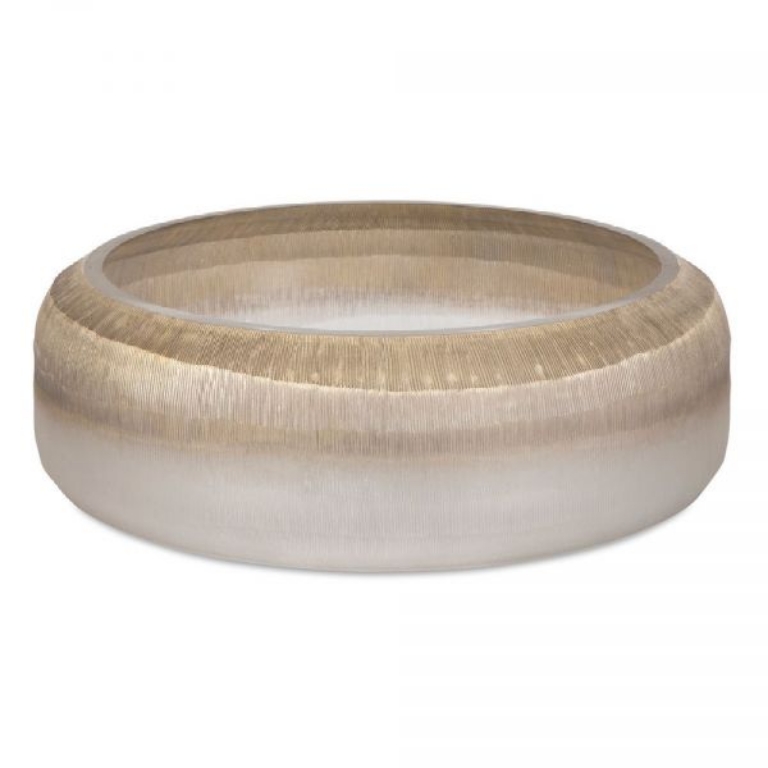 This elegant bowl features a soothing gradient finish with delicate textured lines, creating a soft and organic aesthetic. Its modern yet timeless design makes it a versatile decor piece, perfect for displaying fruit or decorative accents. The neutral tones blend seamlessly into any interior setting.