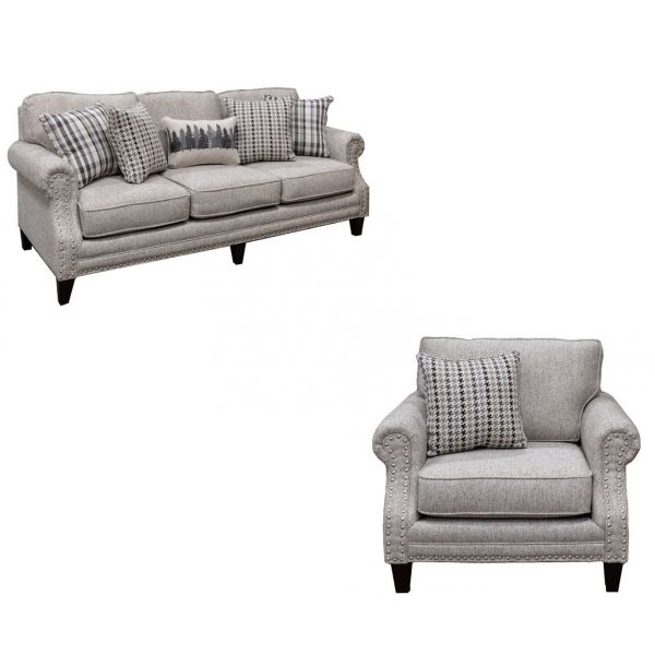 This living group is as timeless and tailored as a little black dress. It features classic rolled arms and a border of nailheads that extends to frame the sofa base. It transcends the fleeting design trends and is a look you can appreciate for years to come. Neutral body fabrics make it easy to redecorate with new toss pillows when you're ready for a new look.
