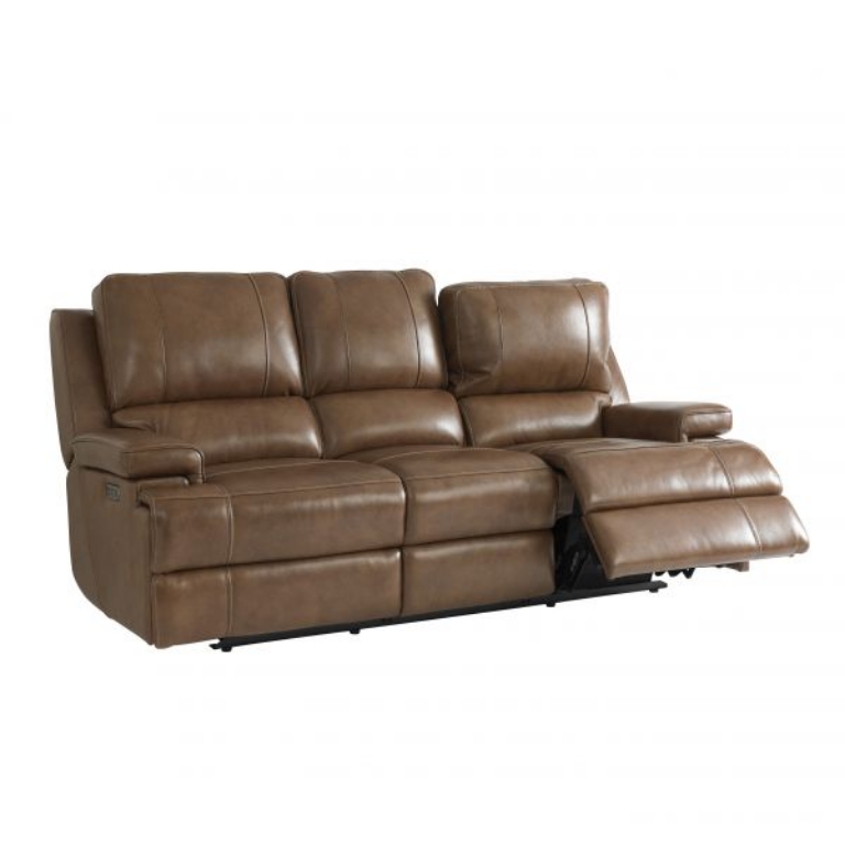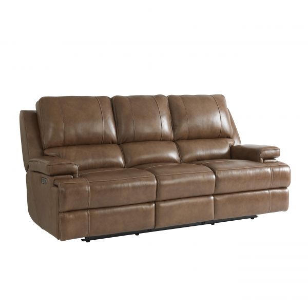 Elevate your living space with the Parsons Umber Power Sofa, where modern design meets unparalleled comfort. This stylish sofa showcases sleek, contemporary lines and padded arms that invite you to relax in style. Featuring a power lumbar support, it effortlessly adapts to your needs, ensuring optimal relaxation for all your lounging activities. The ingenious lay-flat mechanism allows each end seat to recline for a personalized lounging experience, while the center seat remains stationary for those who prefer to sit upright. Whether hosting friends or enjoying a quiet evening at home, this versatile sofa accommodates all your moments. Available in premium leather and a durable vinyl match on the outer arms and back, the Parsons Umber Power Sofa blends luxury with practicality, making it a perfect choice for busy households. Transform your living area into a haven of comfort and sophistication with this stunning piece from Bassett Furniture.