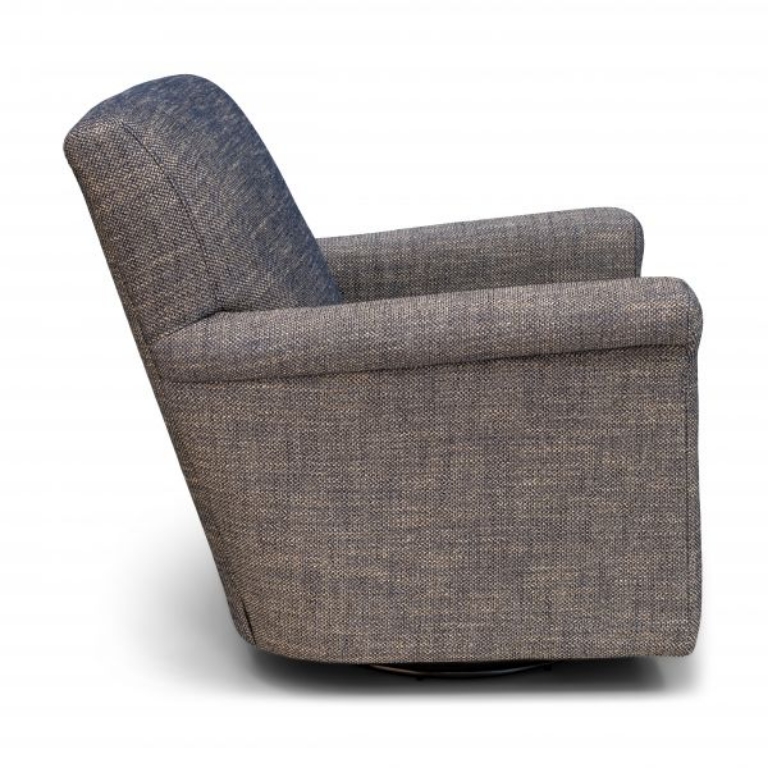 Introducing the Pierce Swivel Glider by England Furniture – the perfect blend of style and functionality for any space. This petite chair may be compact in size, but it certainly makes a bold statement in your home decor. Its sleek, tight back provides a modern silhouette, while the slim key arms add an elegant touch. Designed with comfort in mind, the non-welted upholstery ensures a clean and sophisticated look that effortlessly complements any room. Whether you’re curling up with a book or enjoying casual conversations, the Pierce Swivel Glider is an ideal choice that brings a dash of contemporary charm to your living area. Experience the perfect mix of comfort and style with this stunning swivel chair!