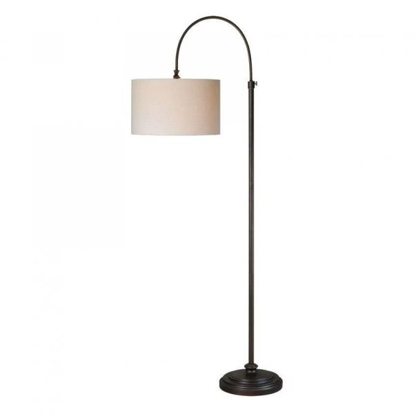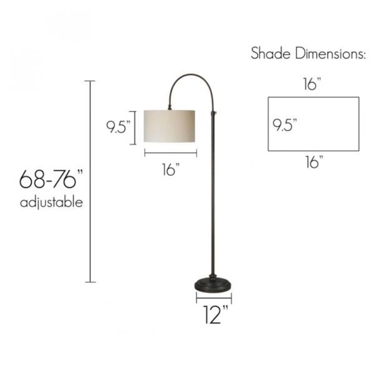 Reagan Floor Lamp is a striking addition to any space, offering both sophistication and functionality. Its curved design provides ideal reading light for your sofa, while the modern mid-century style, oil-rubbed bronze finish, and adjustable neck and height provide an updated timeless look. Complete with a round oatmeal-colored linen drum shade. This lamp exudes timeless charm with its hardback shade construction.