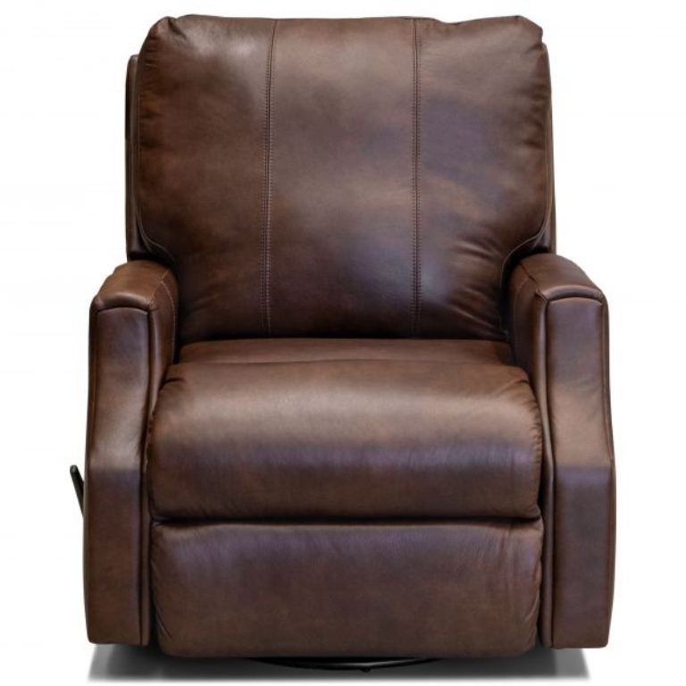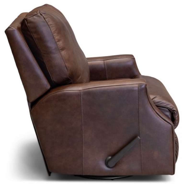 Kick back and relax in the Revelation Swivel recliner. Its stylish soft brown leather cover, cutaway arm accent with deep padding cradles you in comfort. Available as a minimum proximity, rocking and swivel recliner in both leather and fabric.