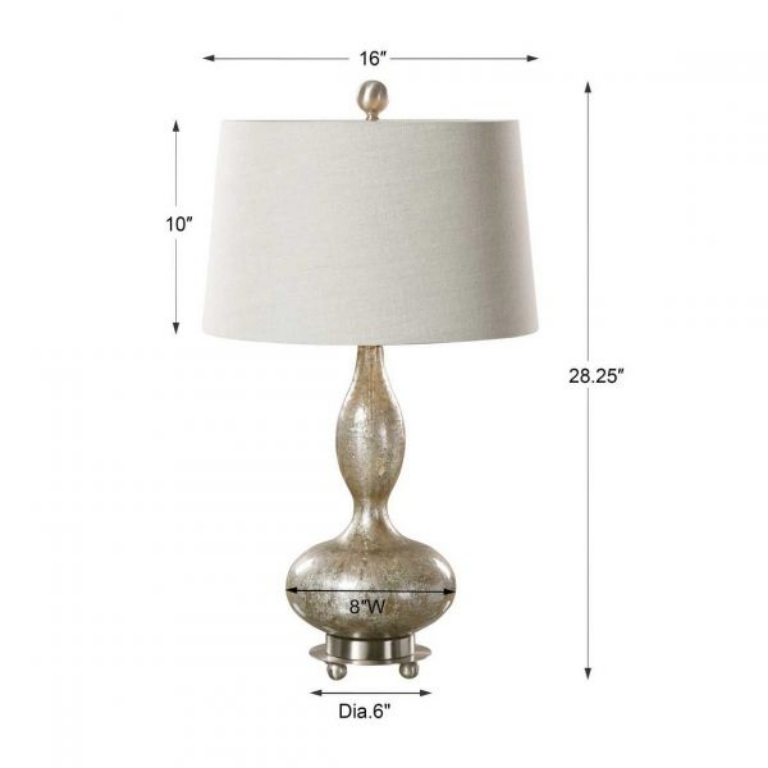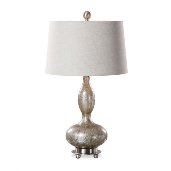 Illuminate your space with the elegant Vercana Table Lamp by Uttermost, a stunning centerpiece that combines modern sophistication with a touch of vintage charm. Crafted from beautiful smoked mercury glass, this lamp reflects light in a way that adds warmth and depth to any room. The brushed nickel metal accents provide a sleek contrast, enhancing the overall aesthetic and ensuring durability. The tapered round hardback shade offers a clean and contemporary silhouette, diffusing light gently to create a cozy atmosphere. Perfect for living rooms, bedrooms, or home offices, the Vercana Table Lamp not only serves as a functional lighting solution but also as a stylish décor piece that complements various design styles. Elevate your interior with this captivating lamp that perfectly balances form and function.