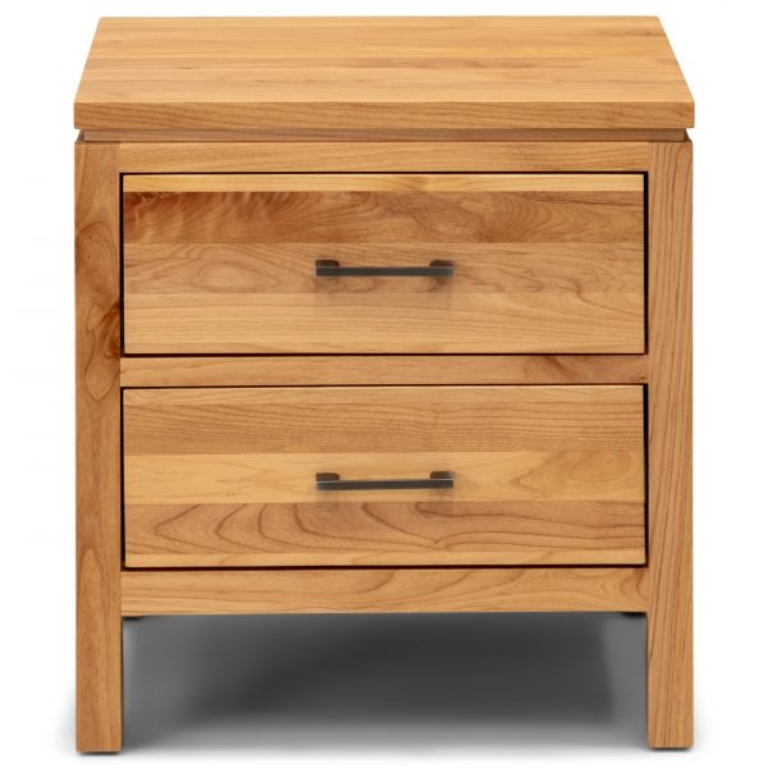The 2 West two drawer nightstand by Archbold Furniture is made from solid North American Alder hardwood. Shown here in a Natural finish with Oil Rubbed Pewter pull handles. All drawer boxes are constructed using Alder hardwood with English Dovetail joinery for reliability. Each drawer is finished inside and out to protect the most delicate fabrics, as well as a full-extension drawer guides for full access front to back.