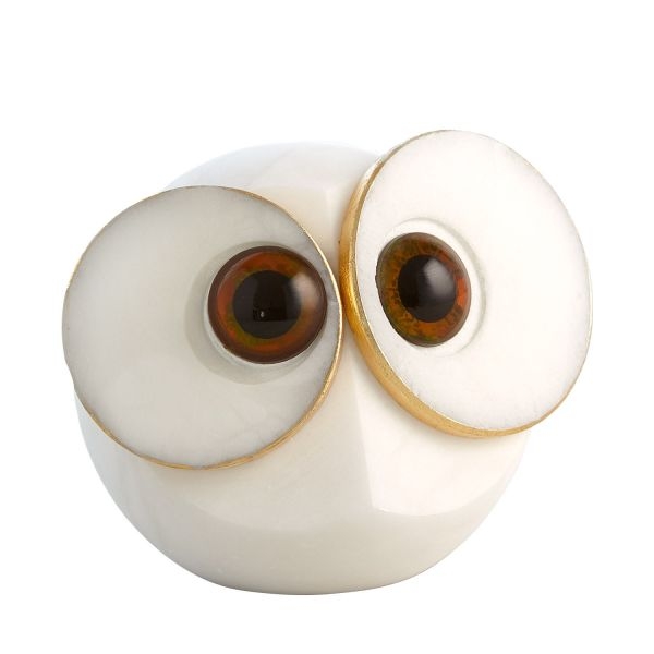 Hoos, looking at you! Our Big-Eyed Owls are whimsically made of handcrafted Italian alabaster with gold leaf accents and glass eyes. As alabaster is a natural product, please be aware that there will always be variations in veining and color.
