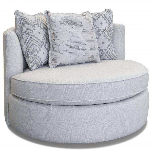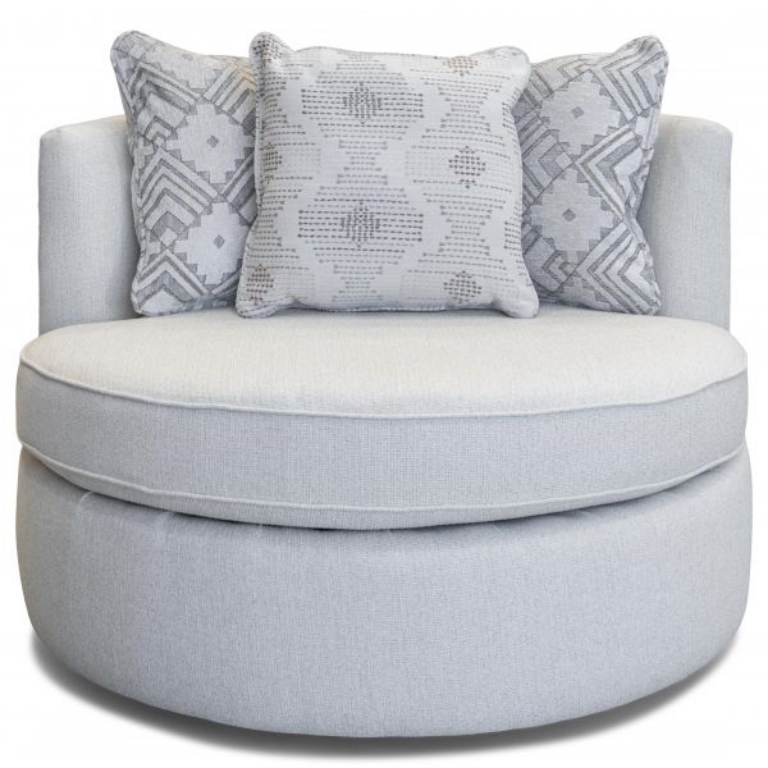 England's Alex swivel chair will soon become your favorite seat in the house. This oversized chair features a plush seat and loose pillow back. Cover it in your choice of over 400 fabrics and make it all yours!