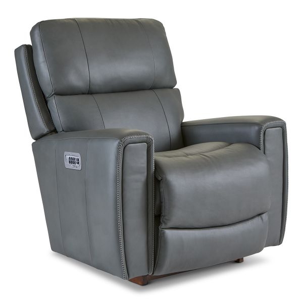 Style and head-to-toe comfort blend in the Apollo Power Rocking Recliner with Headrest and Lumbar. Sleek, padded track arms and a box-border back make a bold statement. Rock in the cozy bucket seat or adjust head, back and legs for peak contentment! Customizable in store with fabrics and other available upgrades.