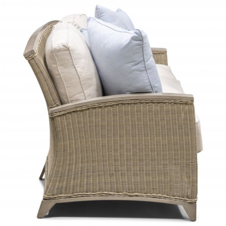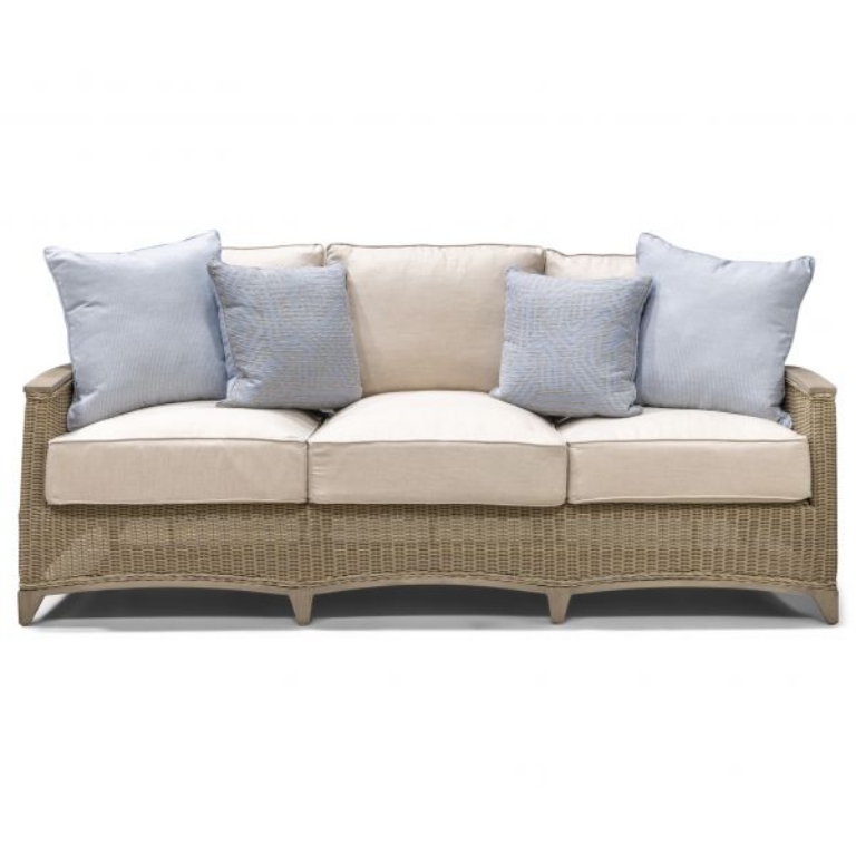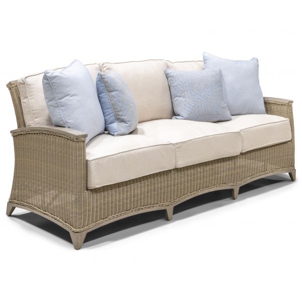 The Astoria Sofa is an update of the classic outdoor wicker sofa. With sleek aluminum detailing and UV-resistant resin wicker over a heavy-gauge aluminum frame, this sofa is built to withstand the outdoor elements. The sofa has an antiqued application and fine braiding detail for the utmost in quality and style. Includes the Astoria full sofa cushion set.