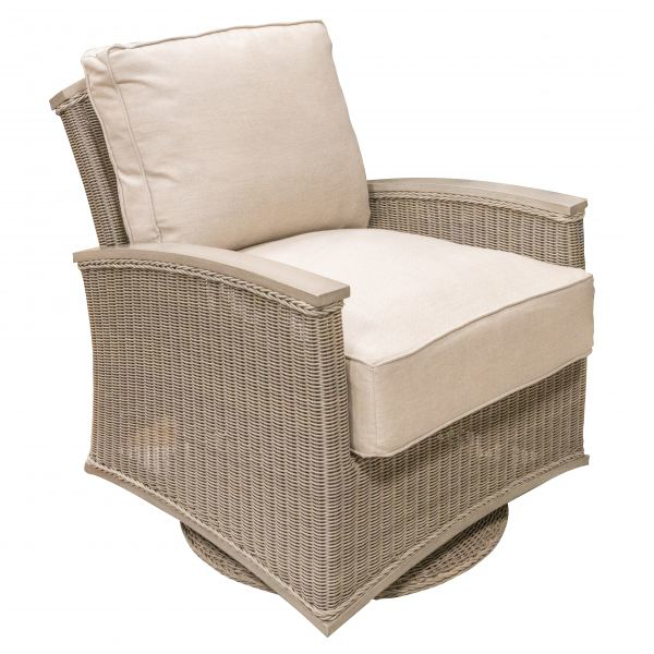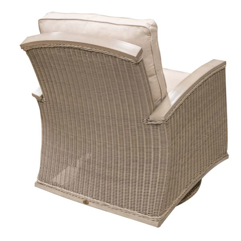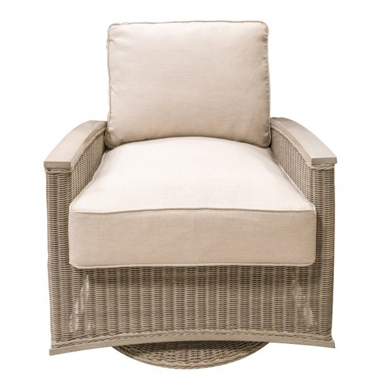 The Astoria Swivel Glider is an update of the classic outdoor wicker chair. With sleek aluminum detailing and UV-resistant resin wicker over a heavy-gauge aluminum frame, this glider is built to withstand the outdoor elements. This chair has an antiqued application and fine braiding detail for the utmost quality and style. It includes an Astoria full cushion set for extra comfort.