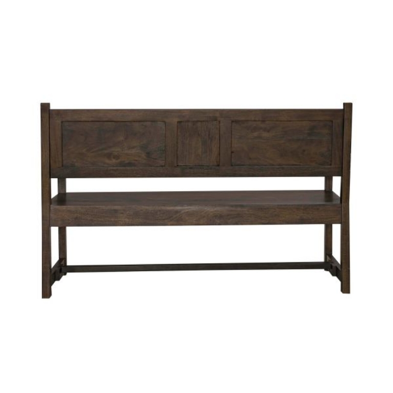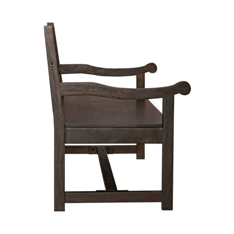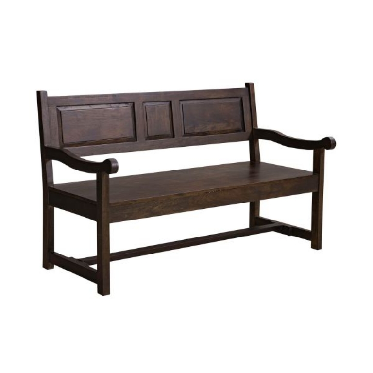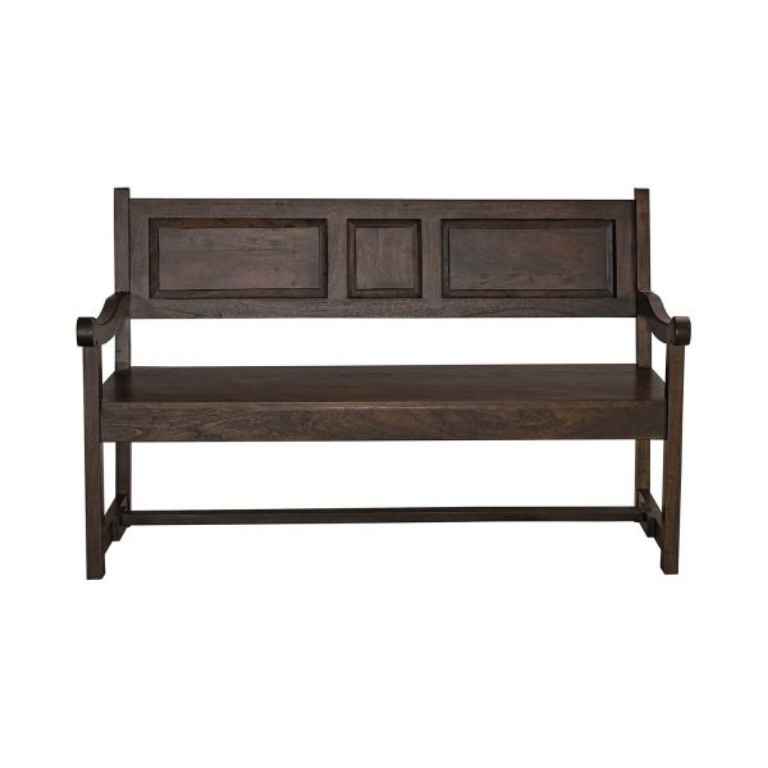Make your home extra special with the Be Seated accent bench. Crafted with excellence using acacia solids, this bench features a Dark Bark finish. The bench has a raised back panel, shaped arms, and blocked legs for your comfort. At fifty-eight inches in length, the Be Seated bench offers plenty of space to seat two comfortably. The classic silhouette makes it easy to incorporate this bench into numerous design palettes.