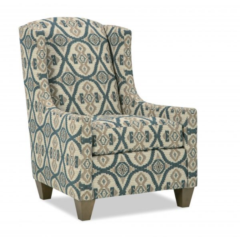 One of our most comfortable chairs, this one features sheltering wings, a gently rounded back, and soft tailored lines. Modern tapered wood legs give this piece the versatility to go from traditional to transitional with ease. A plush tight back keeps this piece neat and looking great.