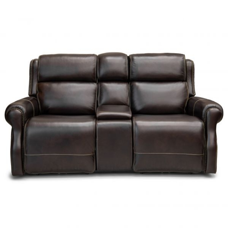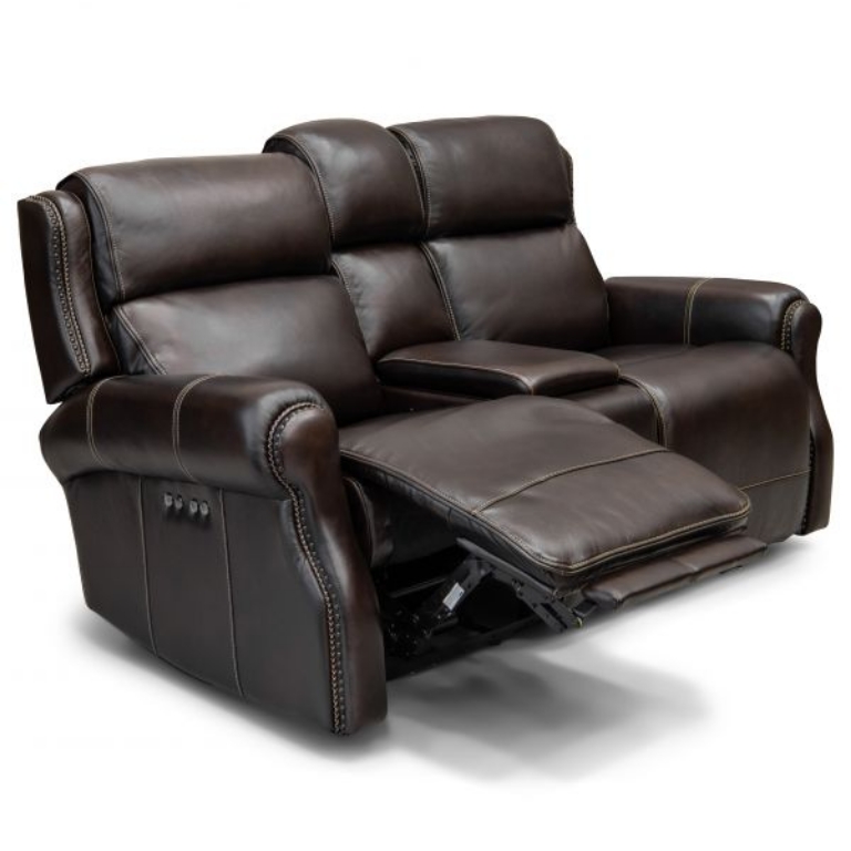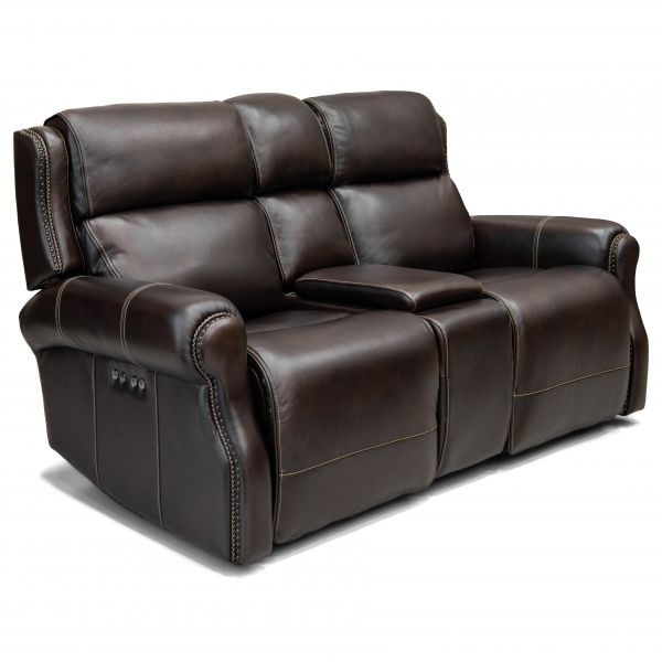 Relax in plush comfort with this power reclining console loveseat. This features a plush design with pillow arms and pad-over-chaise seats. The power recline lets you kick back with the touch of a button, while the power headrest function lets you adjust your neck and head position simultaneously.