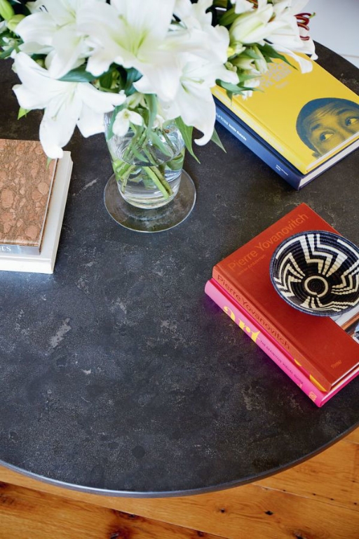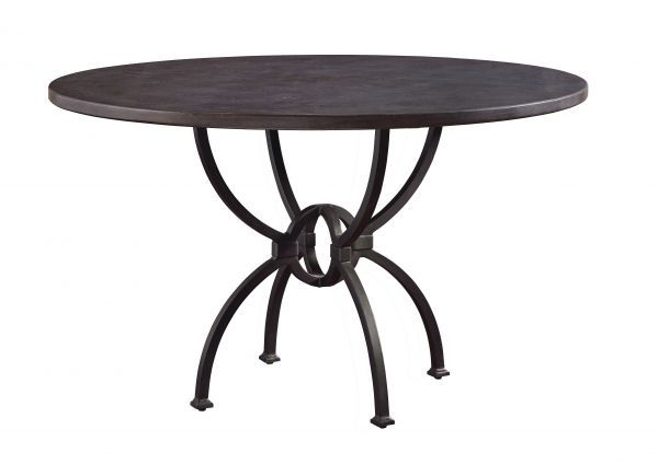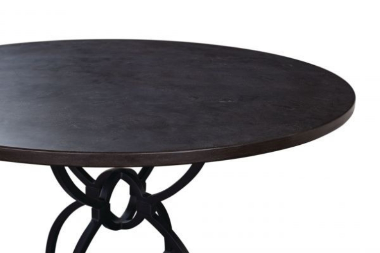 Gather with friends at this gorgeous Custom Round Dining Table. This round table is available for customization. Featuring a Blue Stone top and a metal atlas designed base, this table is sure to be a showstopping piece in your space.