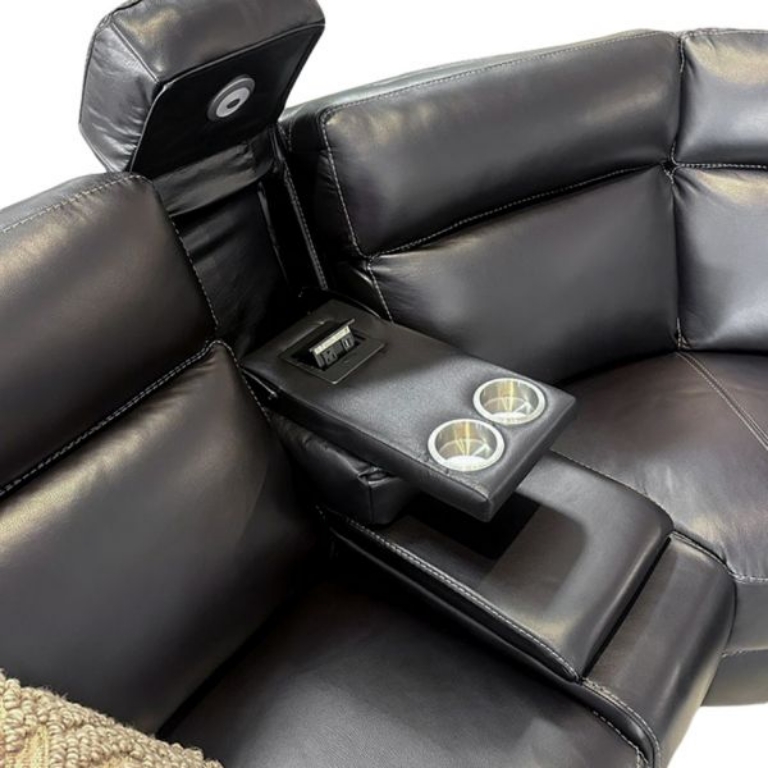 Sit back, relax and recharge with this unique triple reclining leather sectional.
