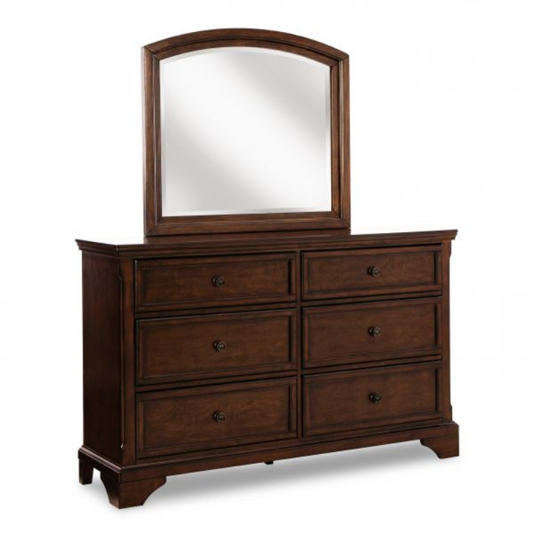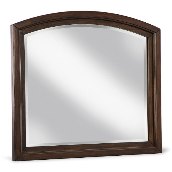 Finish your bedroom suite with the addition of this Brookbauer dresser mirror. Rich with stately character, the dark cherry finish recalls trends of yesteryear. The solid arched top frame secures the beveled mirror atop your dresser. Mirror is not a stand alone design, but requires mounting to the back of the dresser.