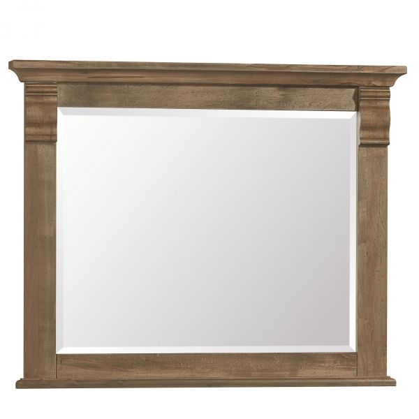 Complete your bedroom collection with this mirror placed on your dresser or chest. Featuring a frame crafted from solid wood and beveled glass. This mirror captures the perfect mix of traditional and rustic styles. The earthiness and rich warmth give the warm natural finish a polished look of authenticity.