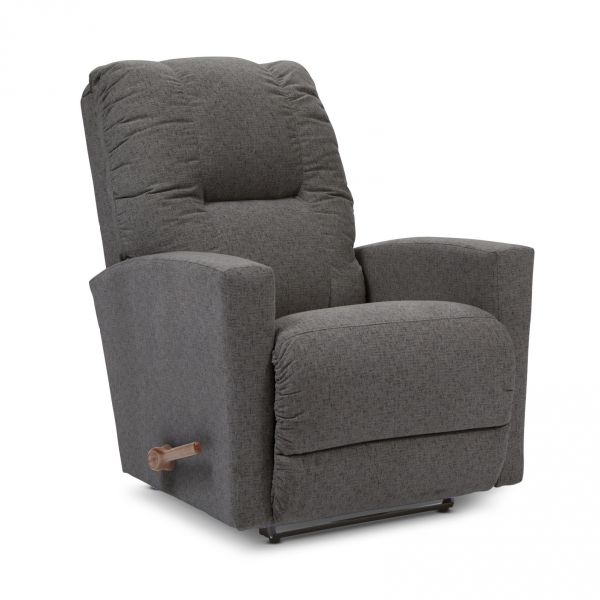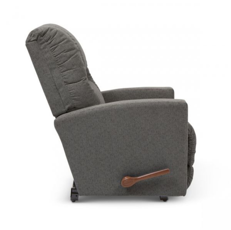 The Casey Rocking Recliner combines contemporary style with classic reclining comfort. It features clean, modern lines ideal for smaller spaces and contemporary decor. Casey's chaise seat, legrest, multichambered back, and gently flared and rounded track arms cradle your body comfortably without an oversized, bulky silhouette. Use the convenient handle on the outside arm to raise the leg rest for reading, relaxing, or watching TV. It is a relaxing rocker with a smooth, graceful motion when not reclined.