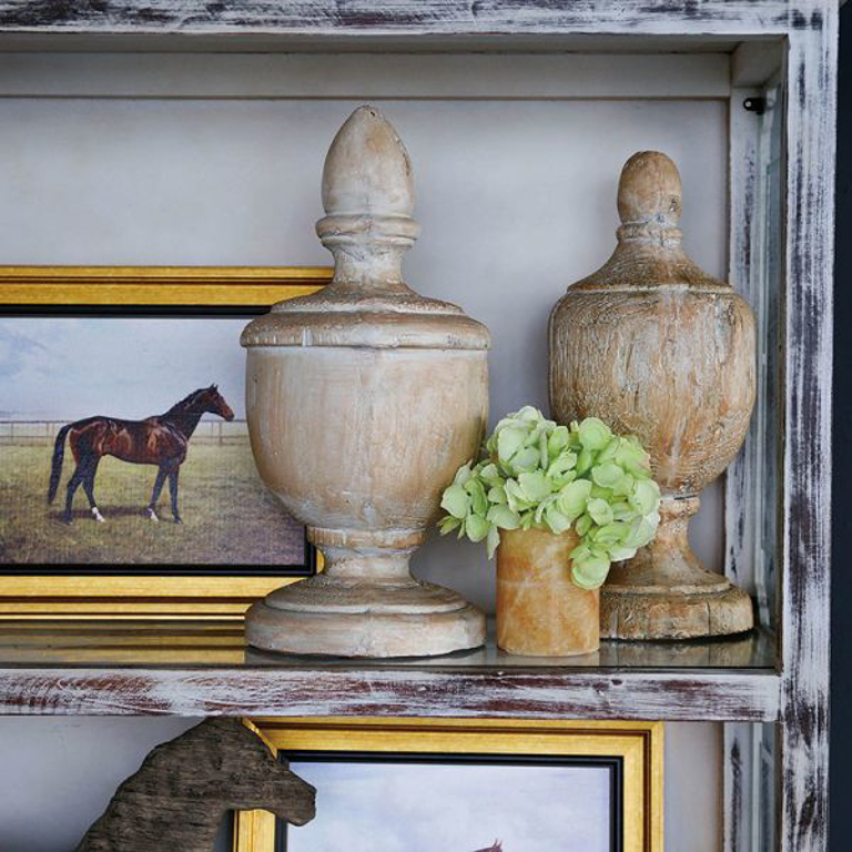 With a whitewashed wood look, the medium-sized Chester Finial Decorative Accent offers beautiful detailing when used inside or outdoors. Place atop a garden post, as a striking addition to a living room mantle, or to give an elegant finish to a staircase. The Chester Finial gives a classic, timeworn feel while its durable construction ensures years of enjoyment.