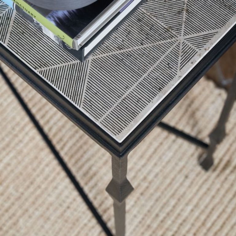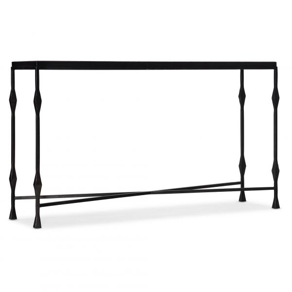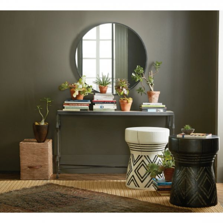 With a tribal design flair, the eclectic Metal-Wood Console combines natural materials with a White Travertine Stone top, a screen-printed design, and a forged black metal base. Hooker Furniture unveils the Commerce & Market brand of accent and occasional pieces, targeting the next generation of furniture buyers. Interior designers were front-of-mind when the Hooker Furniture team developed the dynamic palette and flexible applications of elements within the new brand. The assortment of modern and updated designs presented within the brand includes various materials, styles, and color palettes to inject a younger sensibility into the company’s portfolio. Commerce & Market consists of pieces for the living room, including a variety of accent tables, credenzas, consoles, chests, cabinets, etageres, and bar carts. Globally sourced with design inspiration from around the world, the curated designs feature an eclectic assortment of materials, including cast metals, bone inlay, marble, stone, travertine, painted glass, acacia solids, pecan, oak, mango wood, and walnut veneers in a variety of rich finishes.