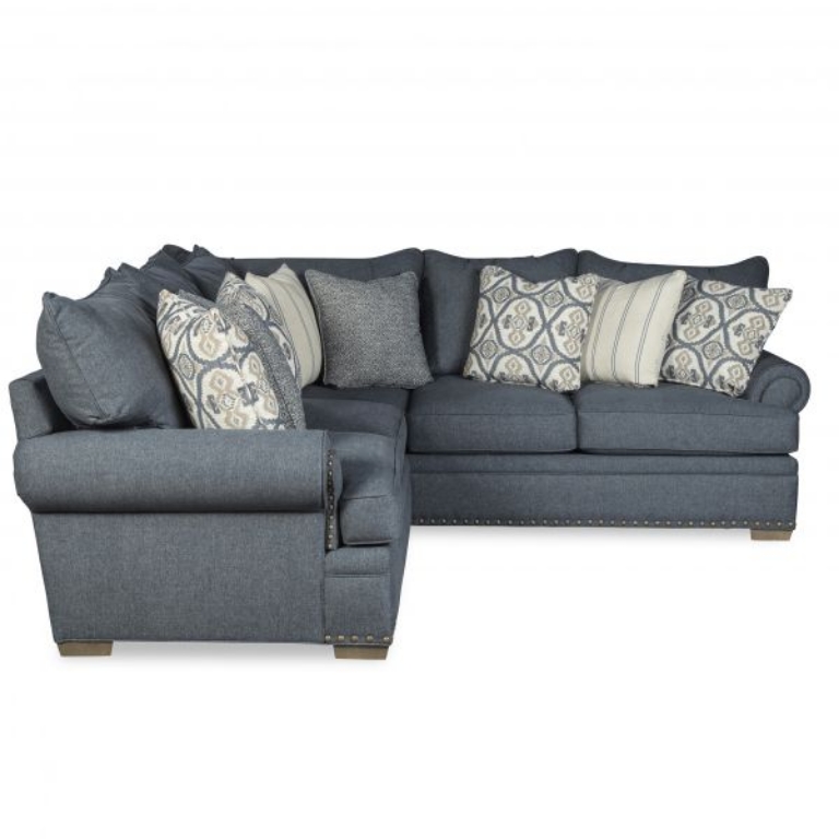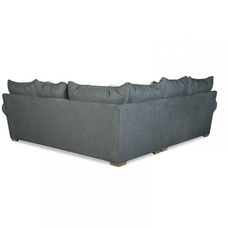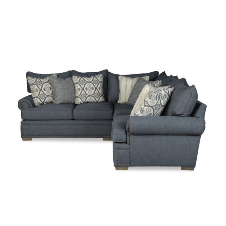 This sectional has a lot to offer if you love artisan details and plush comfort. It features loose bed-pillow backs, loads of accent pillows, and low-block legs. The roll arms are accentuated by an offset front panel and striking nail head trim that is echoed on the base. But comfort is what will win you over. Deep and plush, this sectional provides the perfect place to snuggle in and relax.