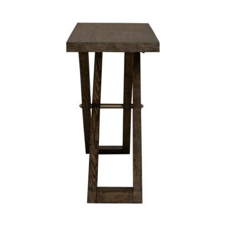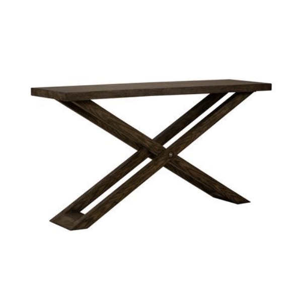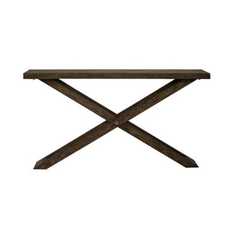The Crossroads sofa table is everything your home deserves. Crafted with excellence using Rubberwood Solids and Wire-Brushed Split Heart White Oak veneers, this table features a Russet Brown finish. The X-style open leg base features a metal stretcher attached by two large bolts for an urban feel. The Crossroads sofa table will make a great addition to any entryway or behind your sofa.