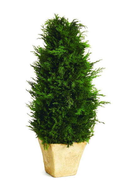 The cypress is a classic design element used in Mediterranean homes for centuries. With wispy branches and a deep evergreen tone, proof positive this classic never goes out of style.