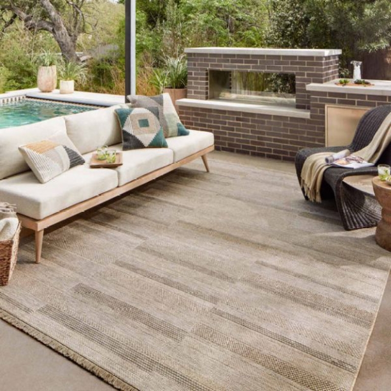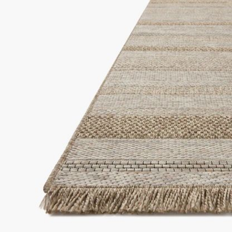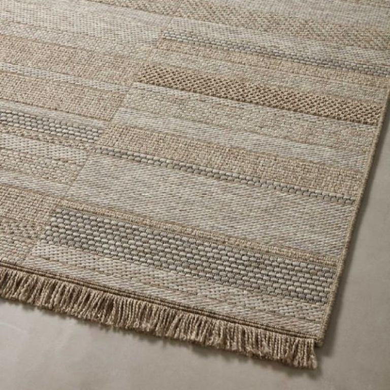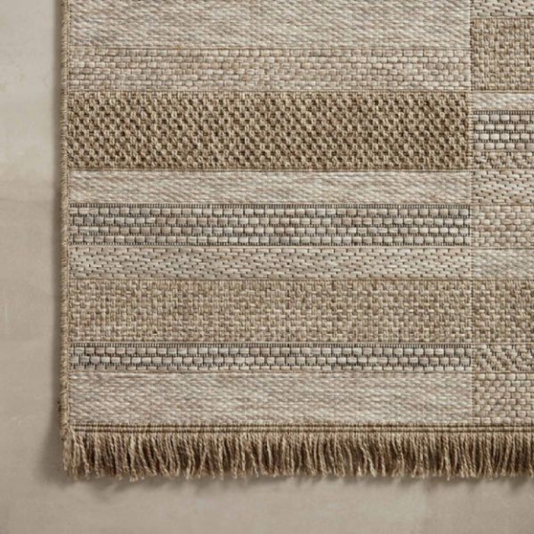 Made for sunny days ahead, the Dawn Collection is an indoor/outdoor rug that looks like a woven sisal rug but is power-loomed of 100% polypropylene, which makes it water- and mildew-resistant (so it's ready for rainy days ahead, too). Available in modern graphic patterns in tonal beige neutrals, Dawn has a short edge fringe that adds a playful and elevated feel to a rug that can handle a lot of foot (or paw) traffic whether outside on a patio or in a busy mudroom. Rinse off with a hose when needed.