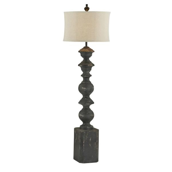 Sometimes, floor lamps aren’t just there for light or decoration. They are often needed to fill a blank space. This floor lamp does just that with its bulky body and block base, slightly worn black finish, and gold accents.